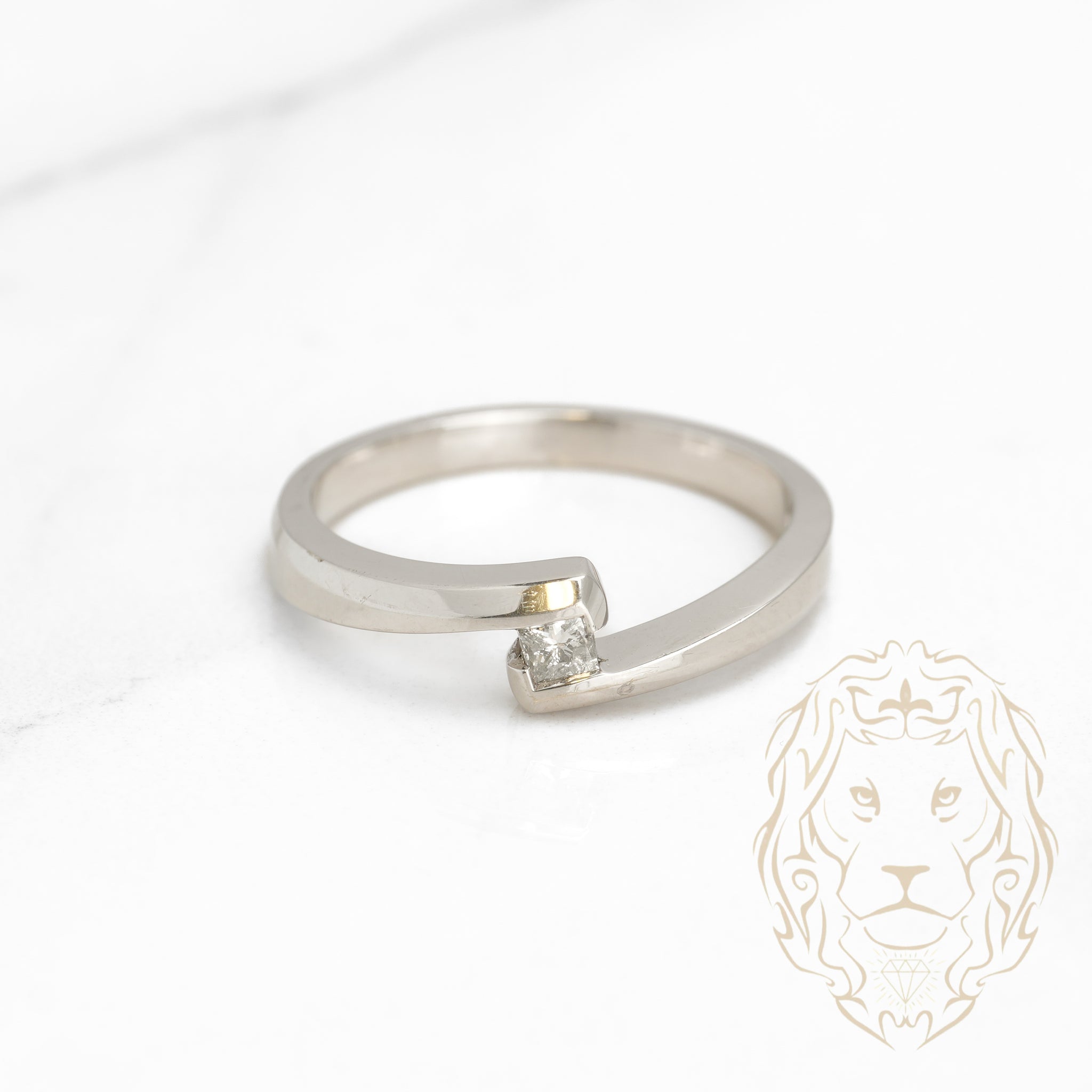 Engagement ring - Gold 10K white solitaire natural princess cut diamond 0.10CT tension set - RIGD263