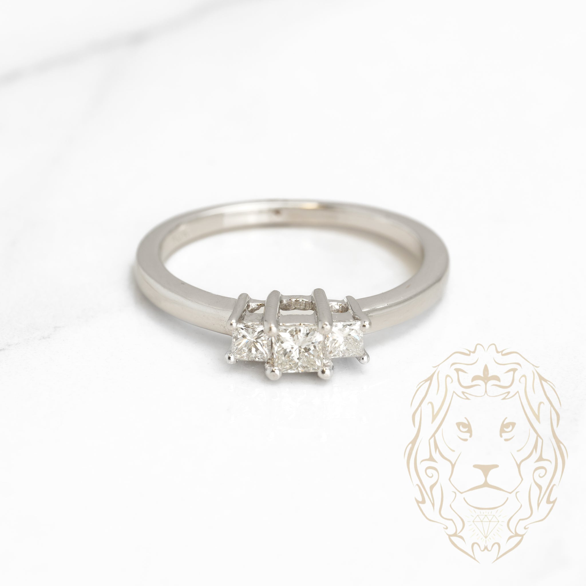 Engagement ring - 14K white gold three stones princess cut natural diamonds 0.60CT - RIGD302
