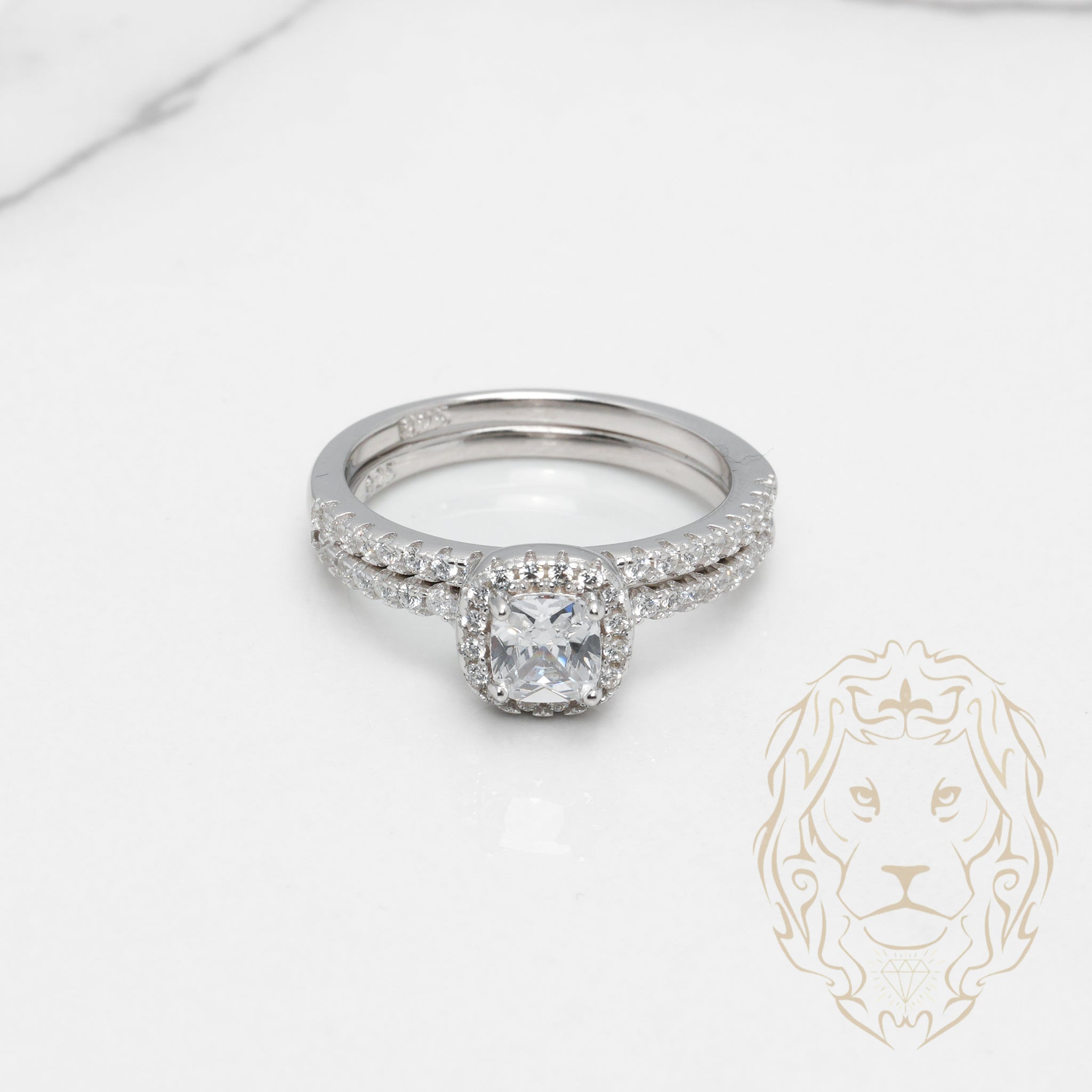 Bague de fiançailles - Argent ensemble (2) halo pierre cz coupe coussin & alliance semi-éternité - RIS870