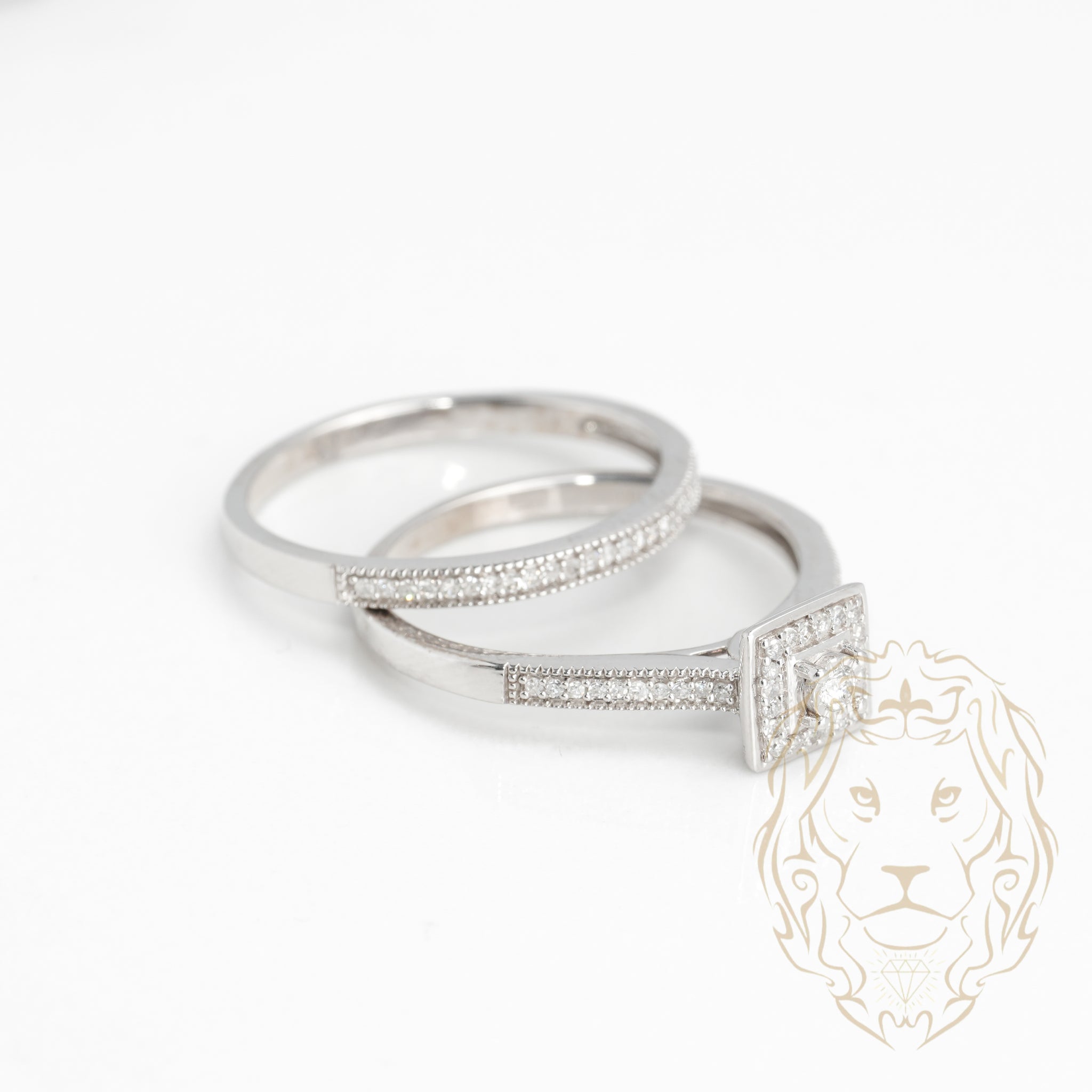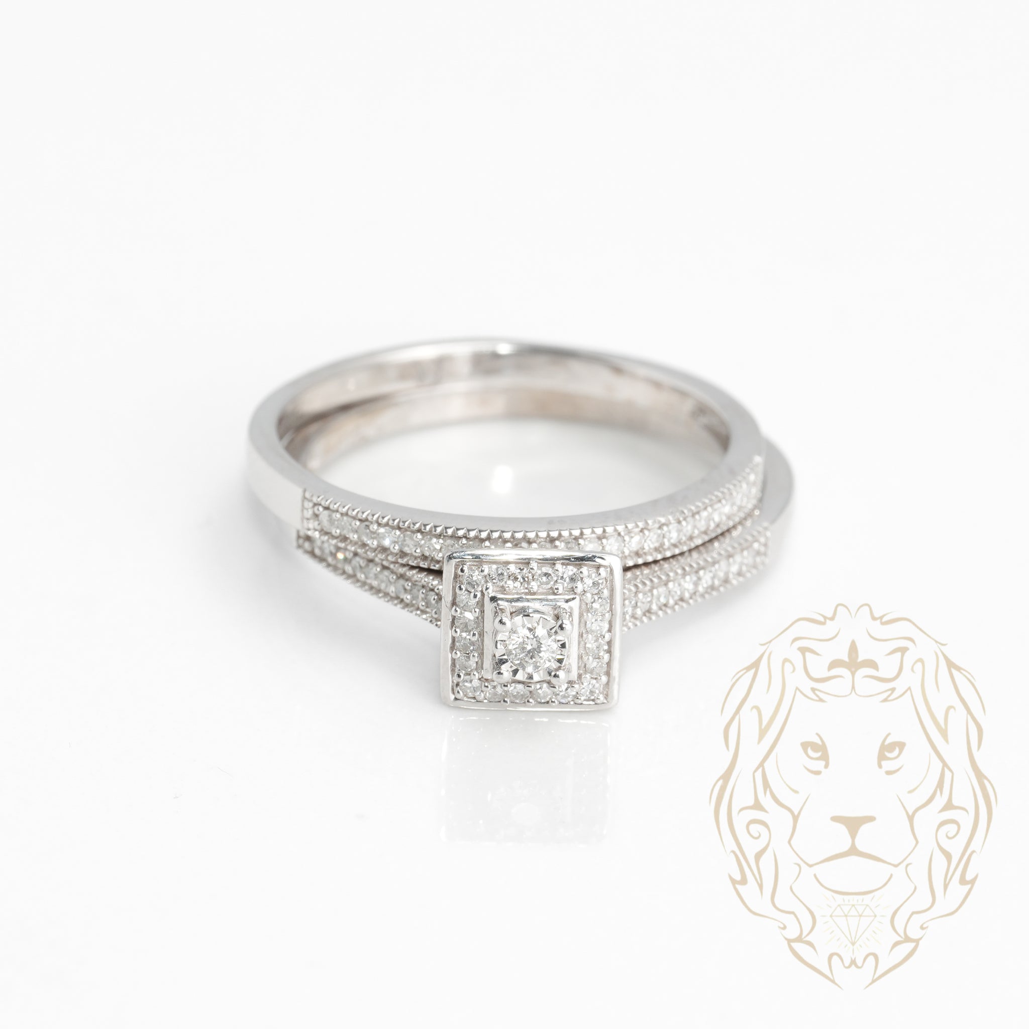 Engagement ring - 10K white gold set (2) halo square illusion round brilliant cut natural diamond with mount & pave 0.25CT wedding ring - RIGD351