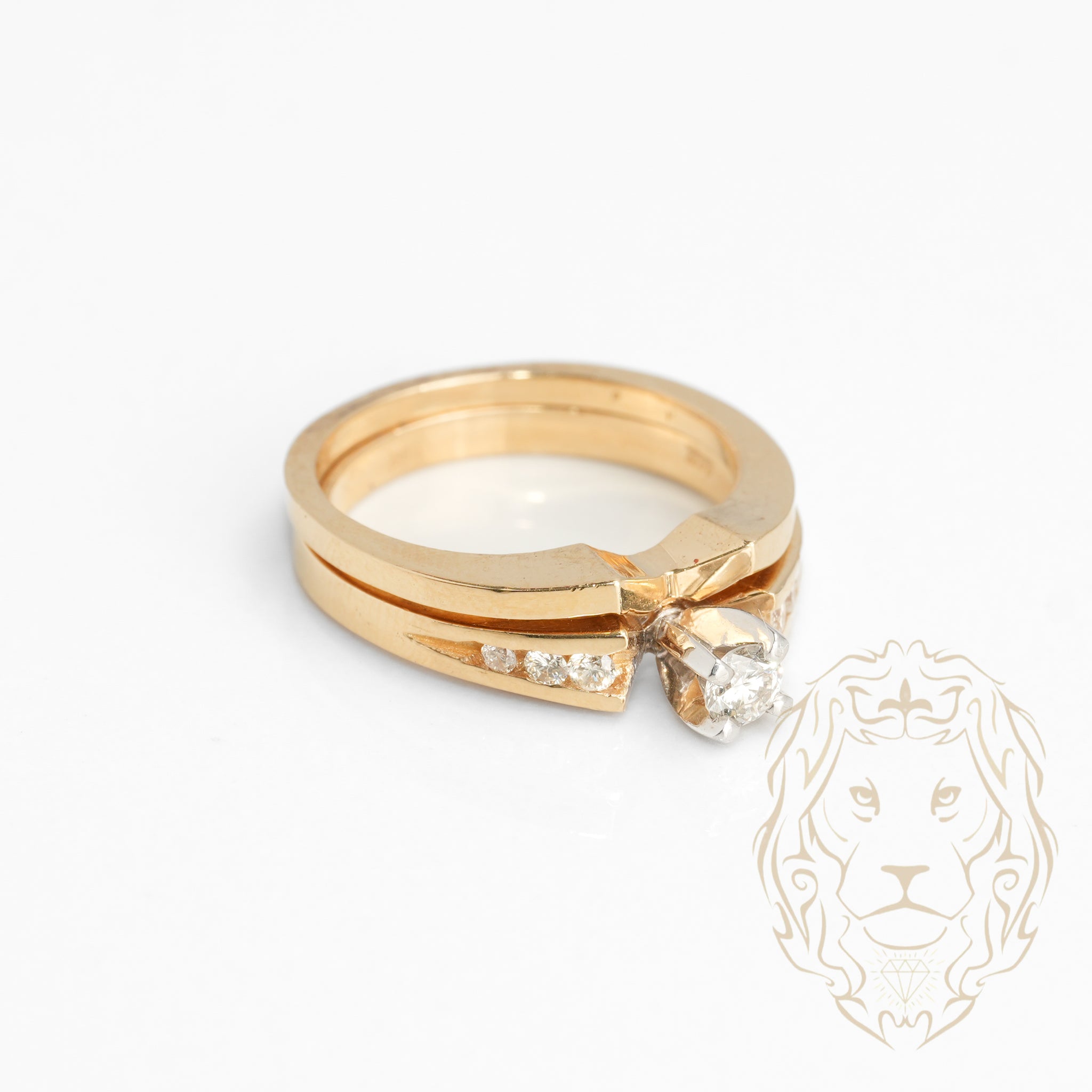 Engagement ring - 14K yellow gold set (2) round brilliant cut natural diamond 0.20CT with channel set diamonds & wedding band - RIGD398