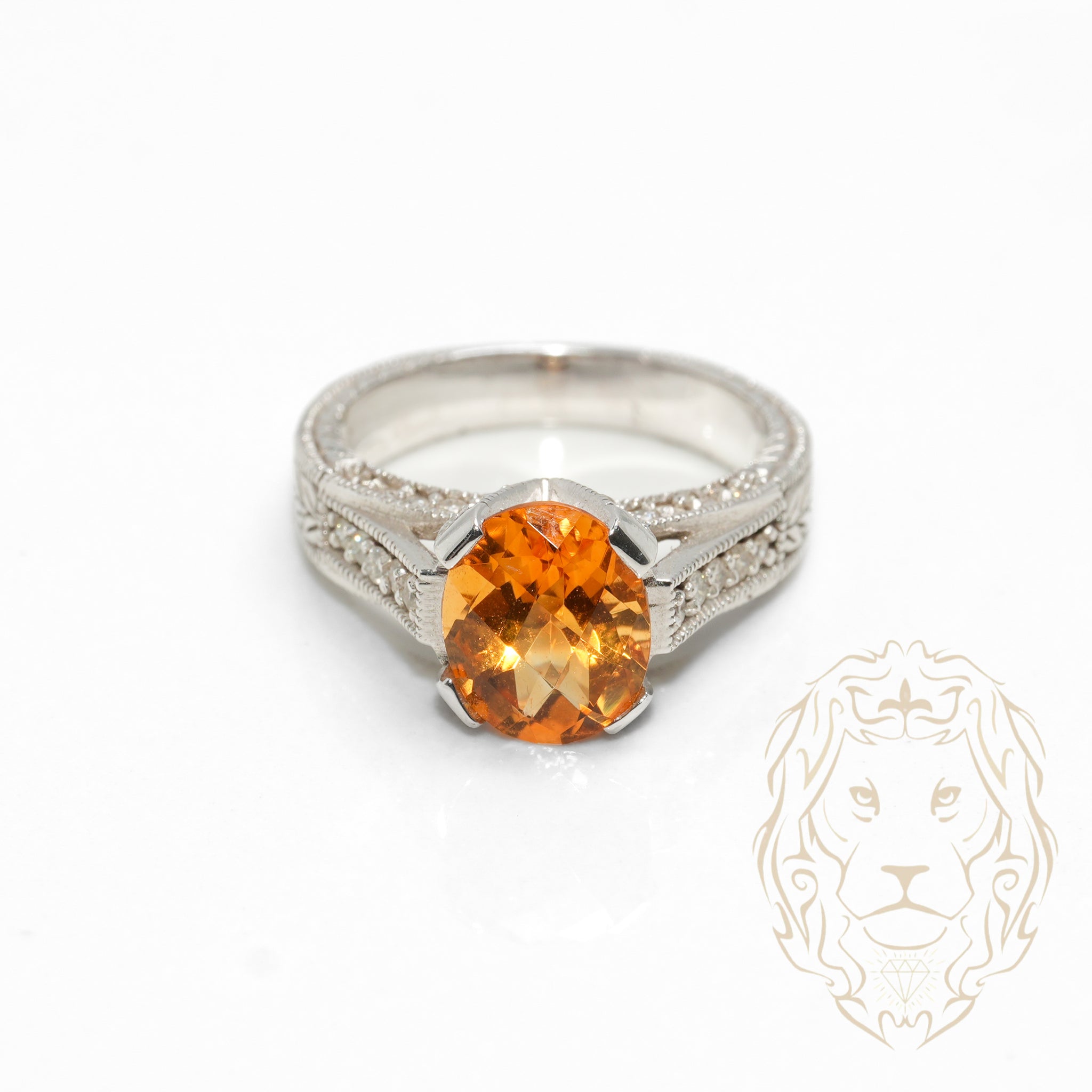 Engagement ring - 14K white gold citirine 2.00CT & natural diamond pavé setting 0.30CT - RIGD475