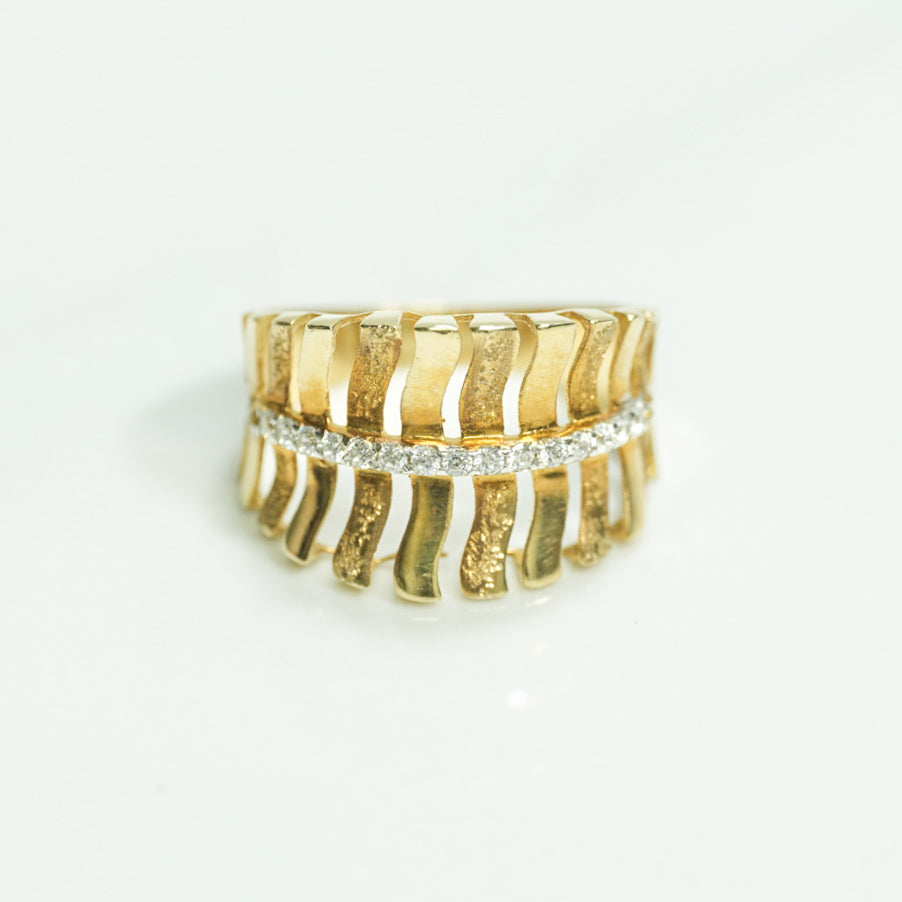 Woman's ring - 10k gold wavy stripes paved with yellow cz - RIG120