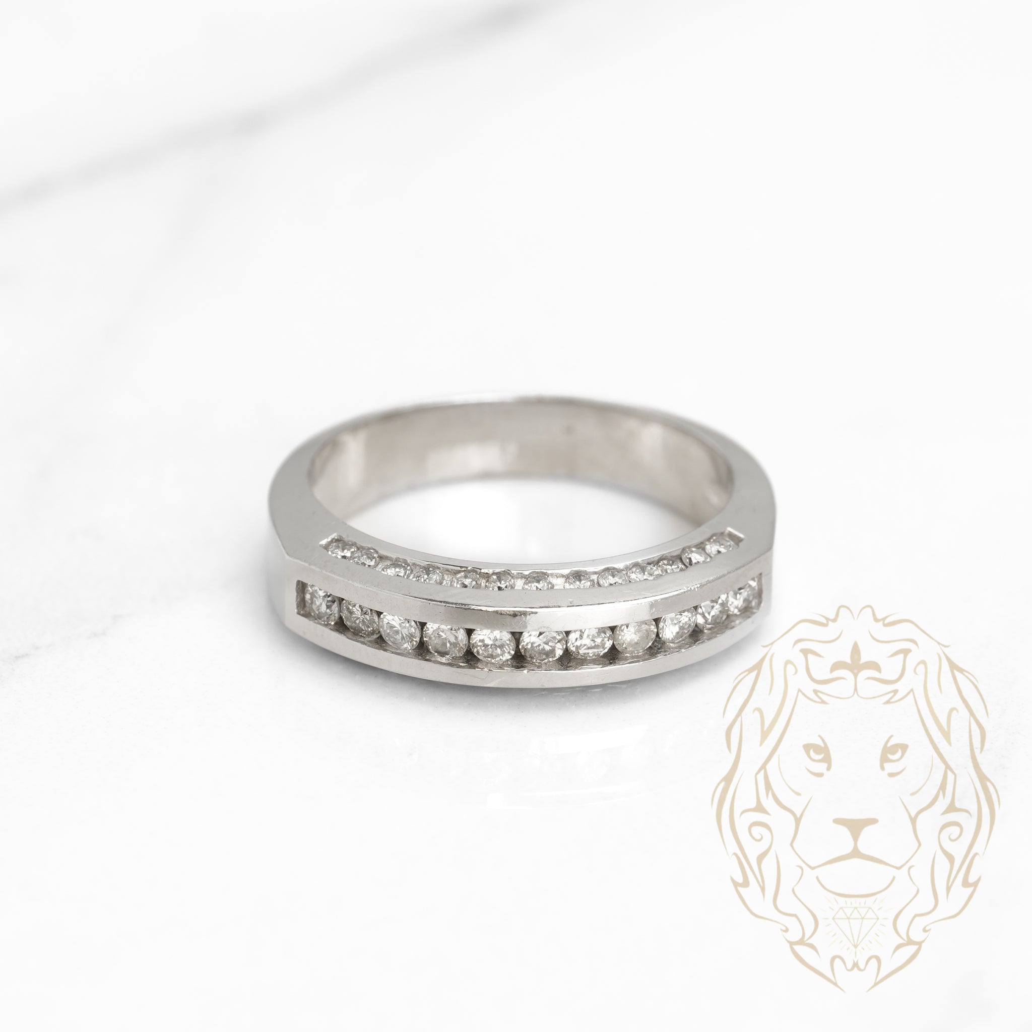 Ring - 14K white gold semi eternity cut 0.60CT round brilliant diamonds channel set - RIGD273