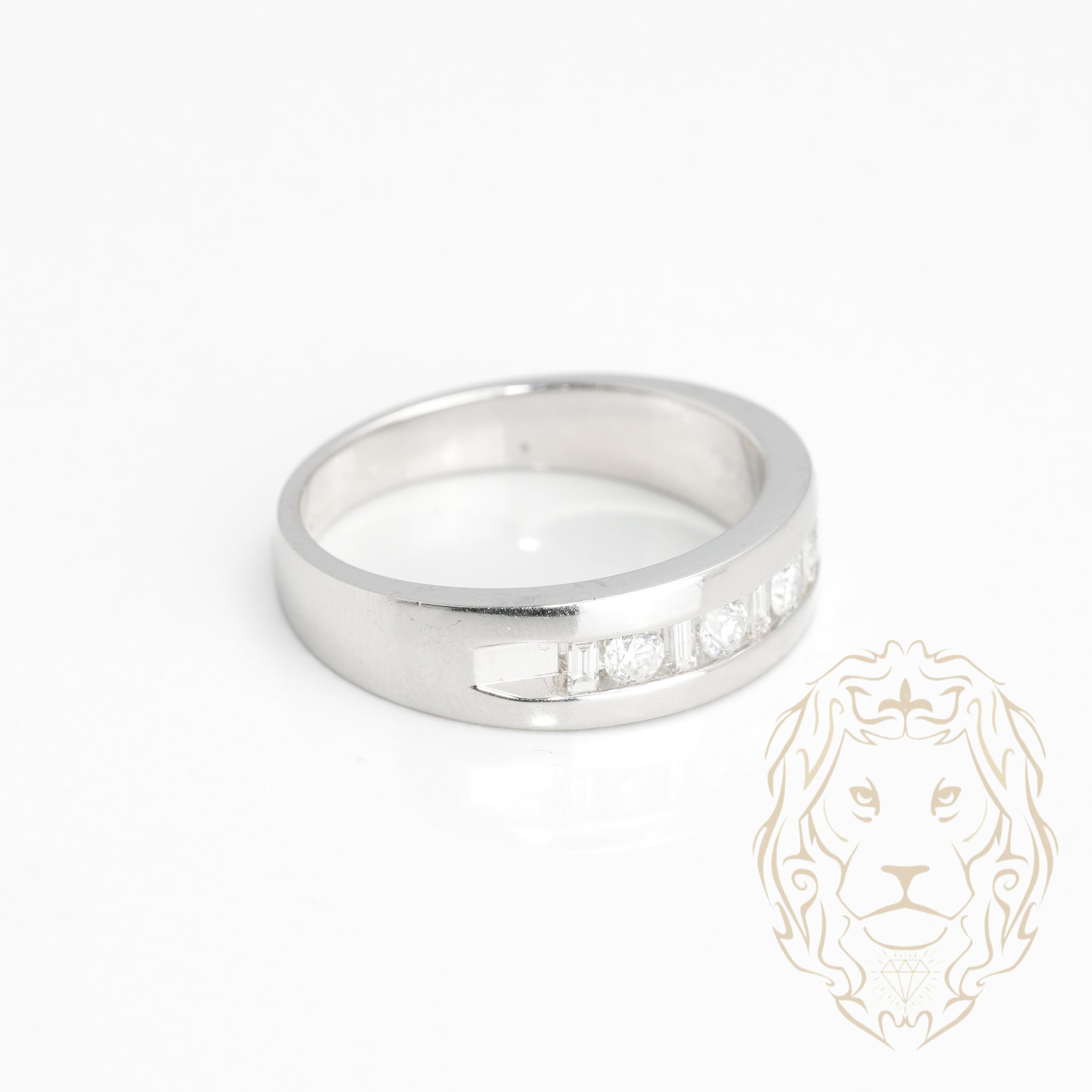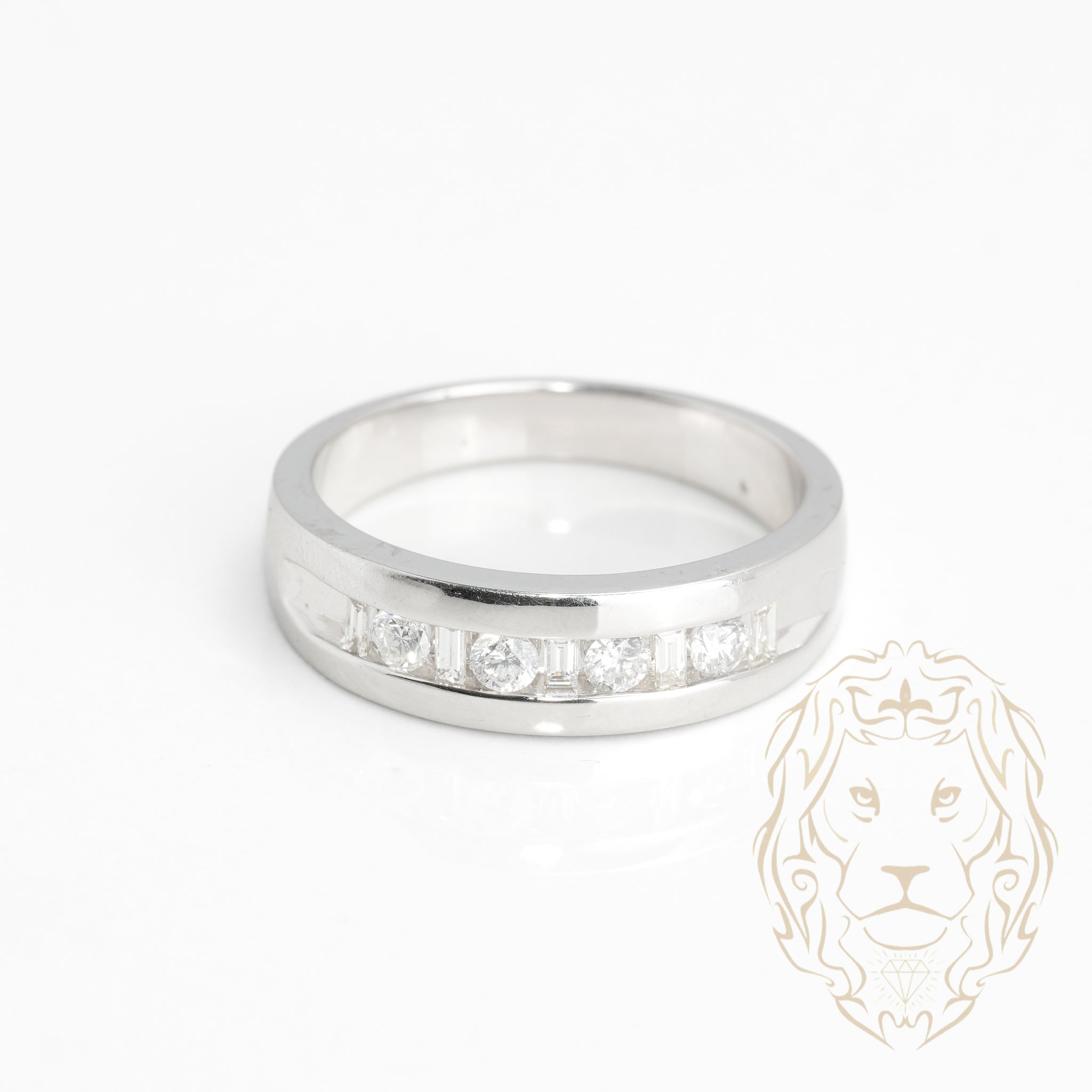 Wedding band ring - 10K white gold set with natural 0.30CT round brilliant cut & 0.15CT baguette cut channel diamonds - RIGD379