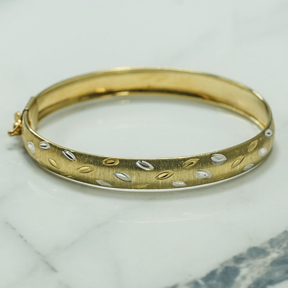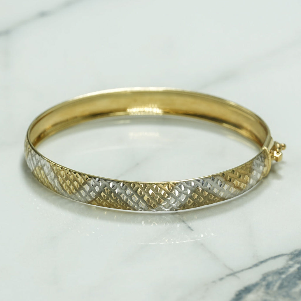 Lady's bangle bracelet - Thin 10K gold duo pattern two-tone yellow & white - BRG130