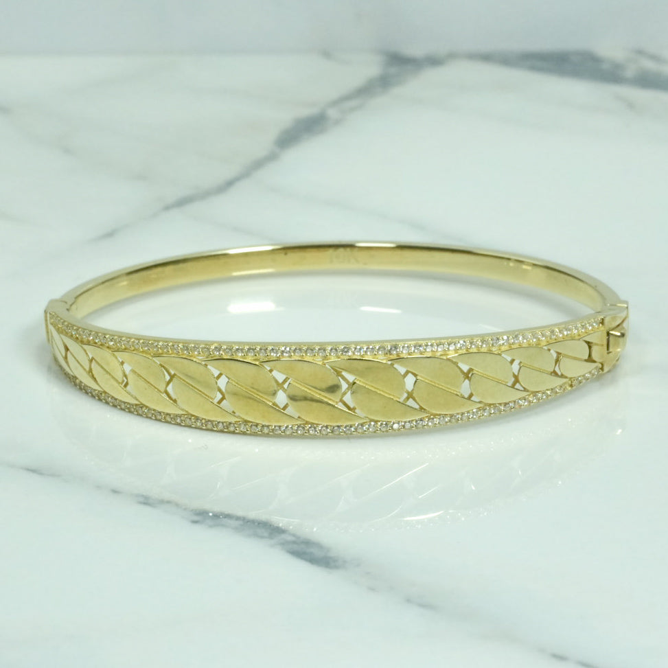 Lady's Bangle - 10K Gold Cuban Yellow Pave Cz - BRG106