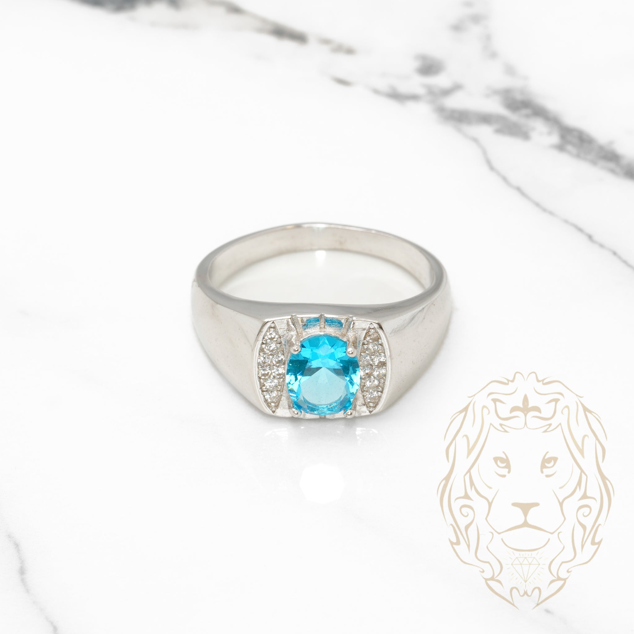 Men's ring - Silver oval cut aqua stone with faceted cz pave - RIS024