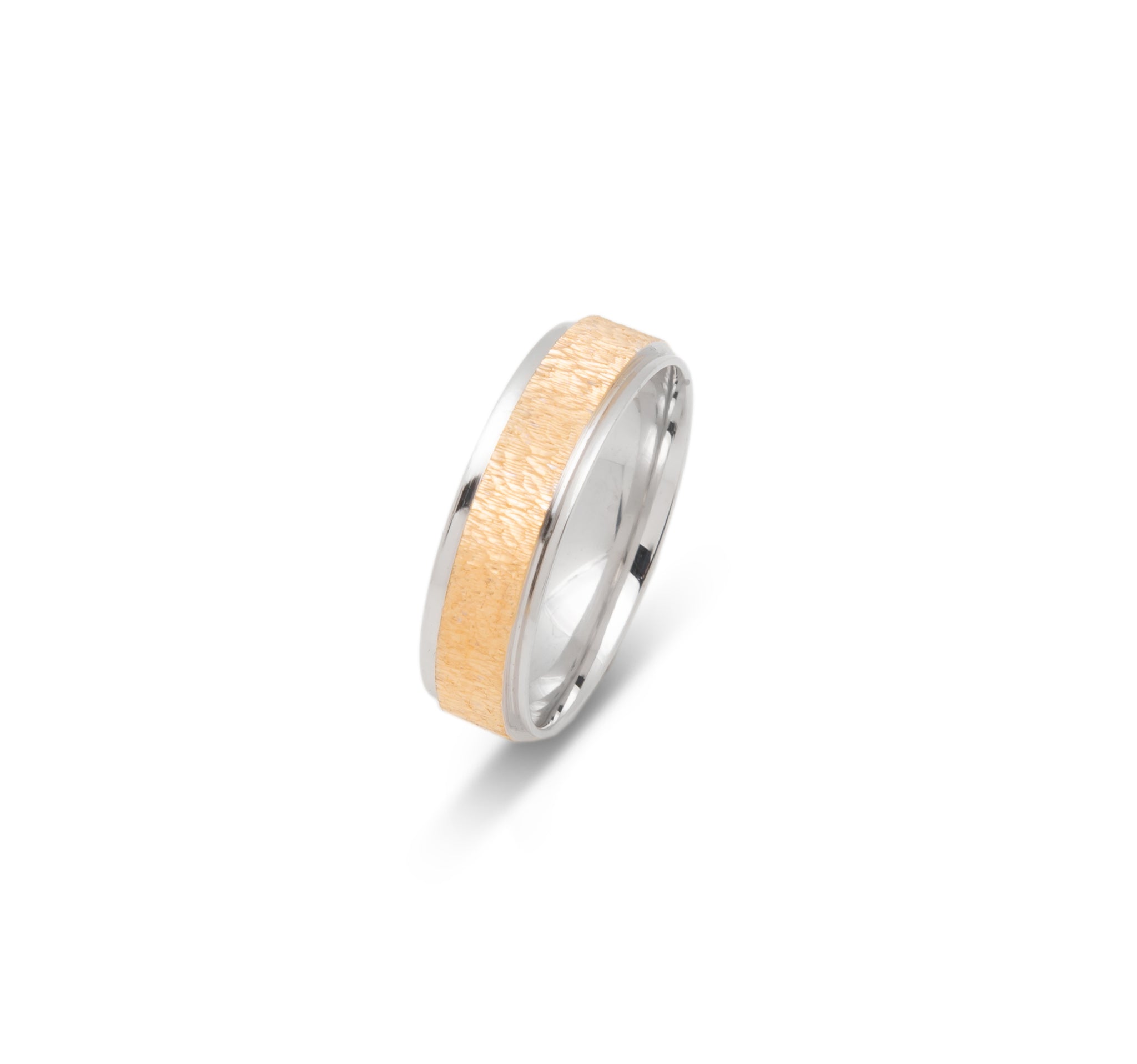 Wedding band ring - 10K two-tone yellow & white textured gold & polished edges 6mm - RIG653