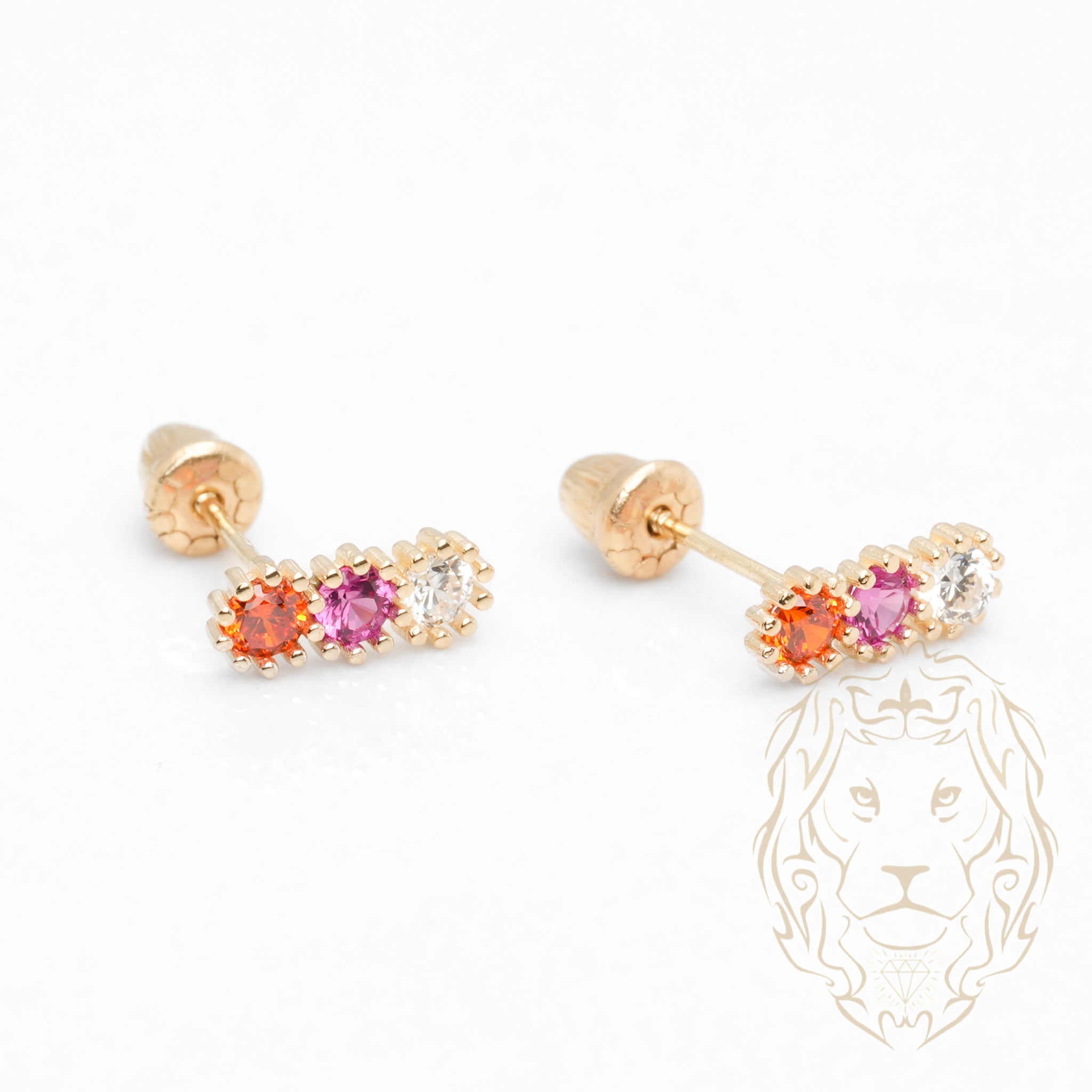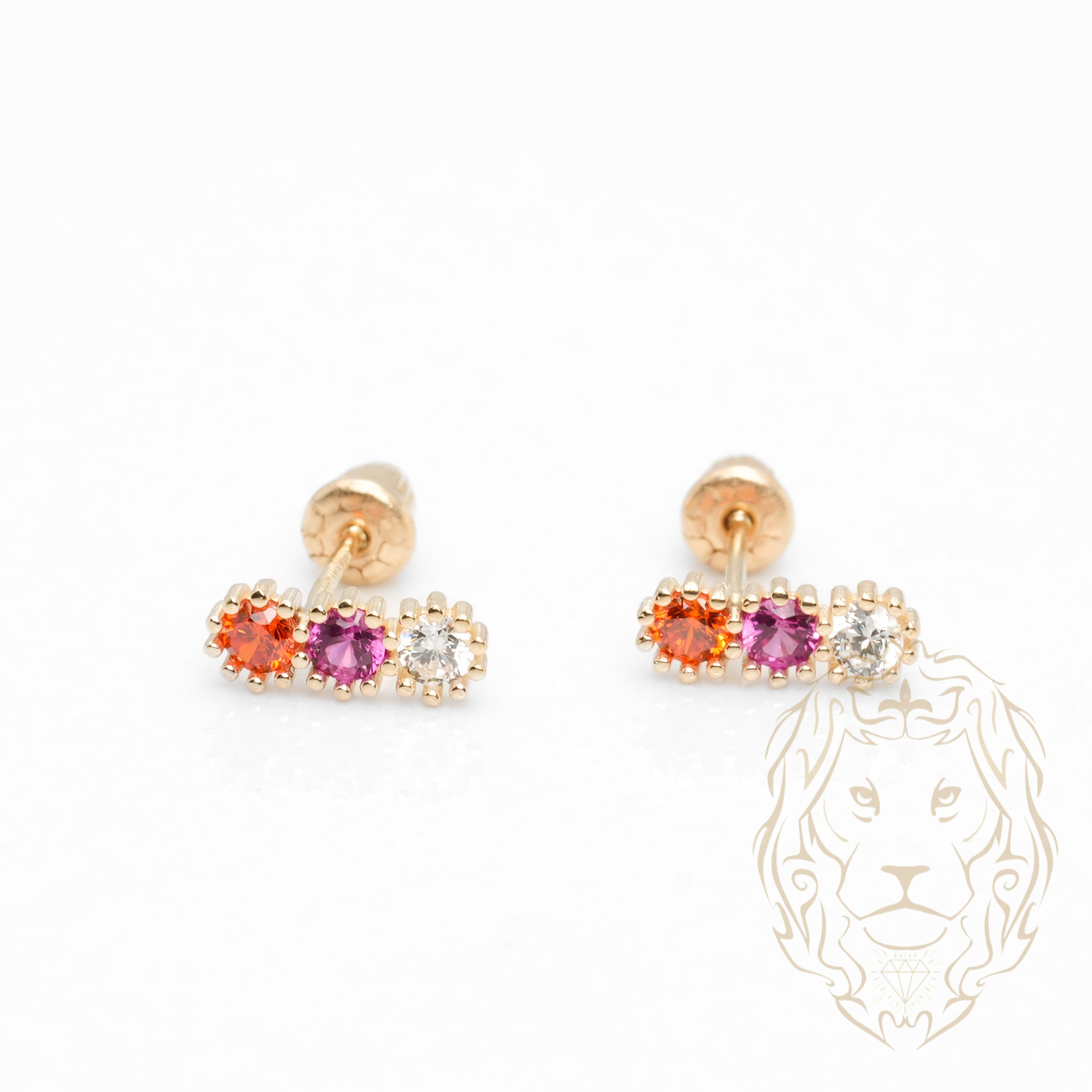 Puces trinité en or 10K jaune serties de trois cz brillants. Un style classique revisité.