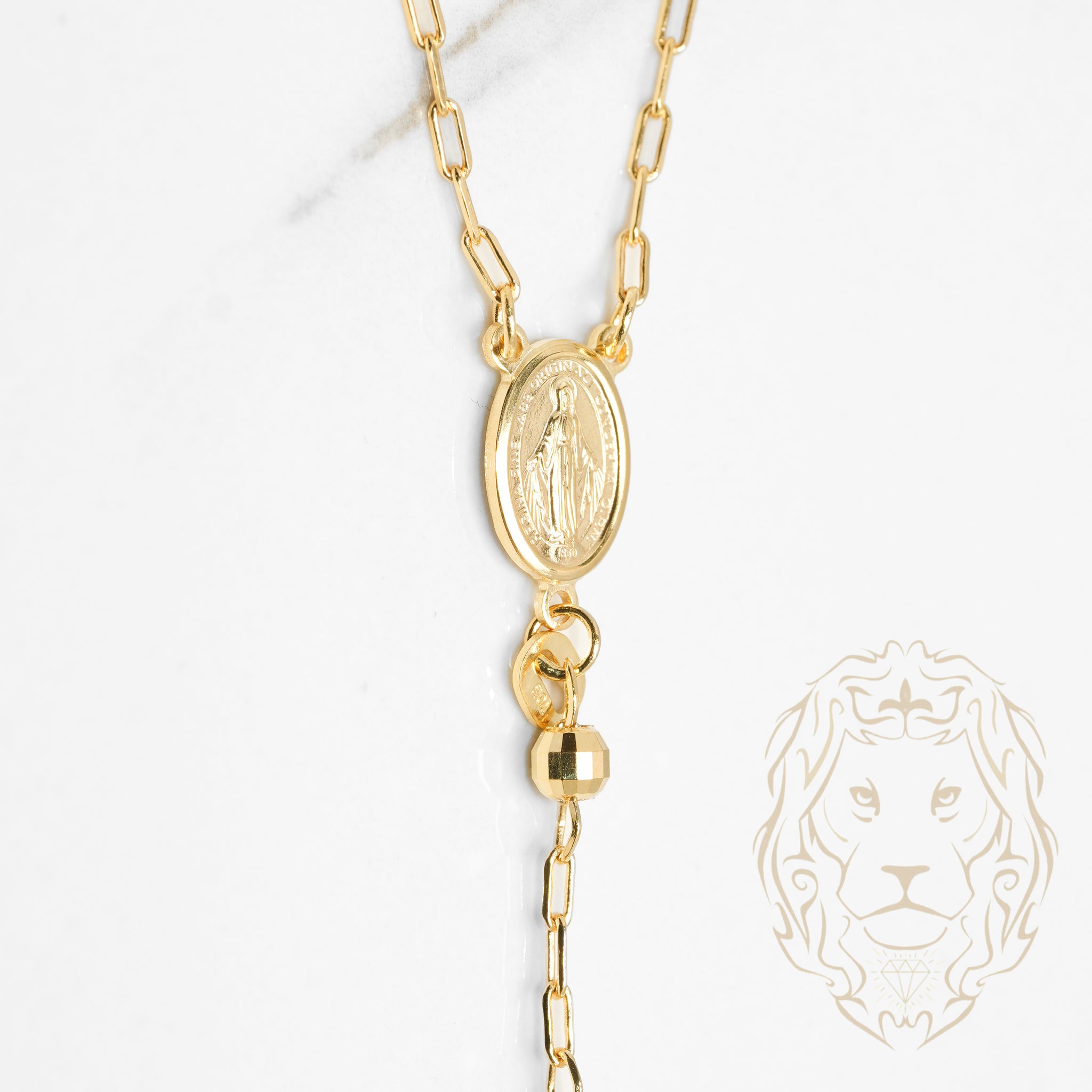 This 10K yellow gold rosary is adorned with 3.75mm brilliant-cut pearls, a sacred piece of luminous refinement.