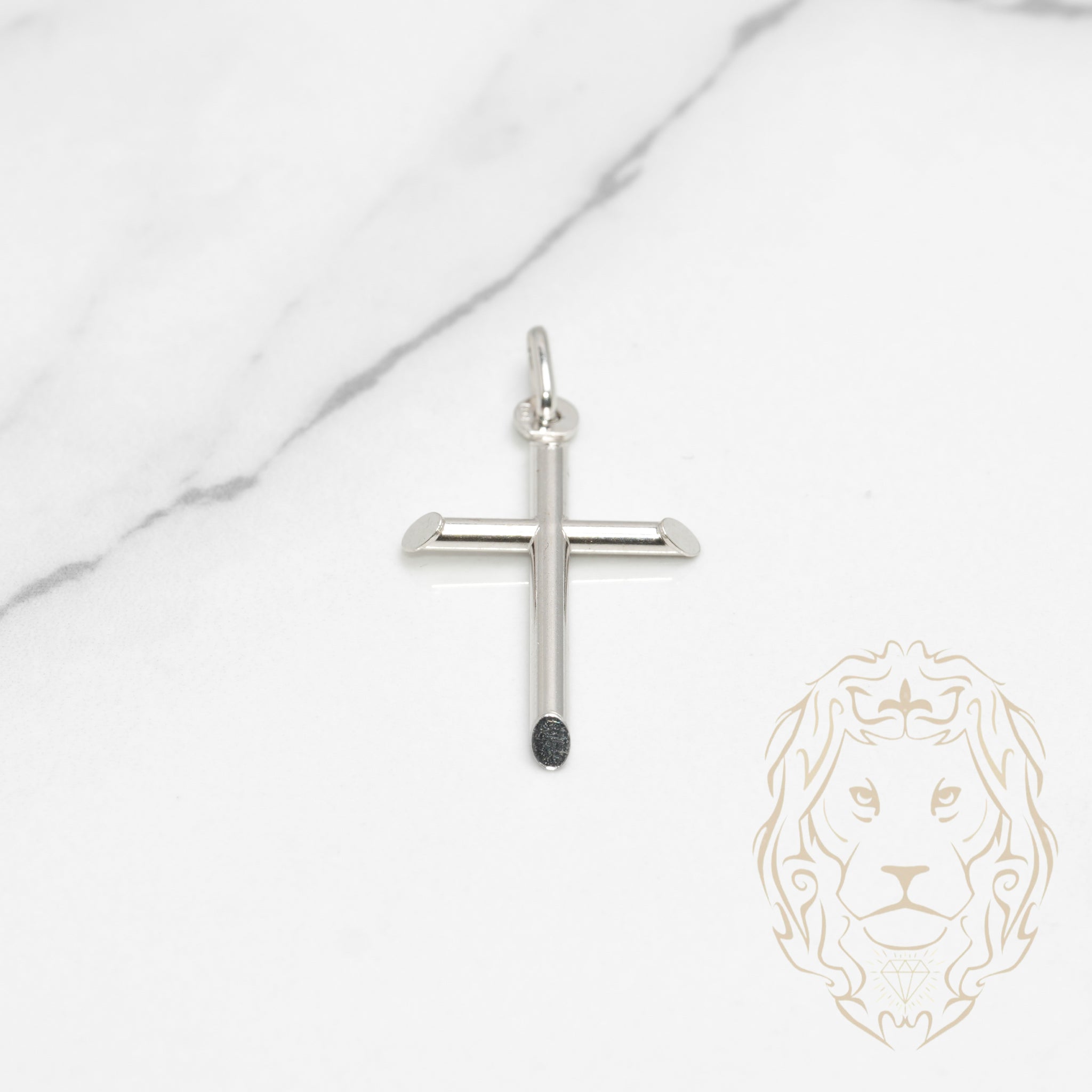 Minimalist and brilliant, this polished 10K white gold cross is perfect for a touch of uncluttered faith.