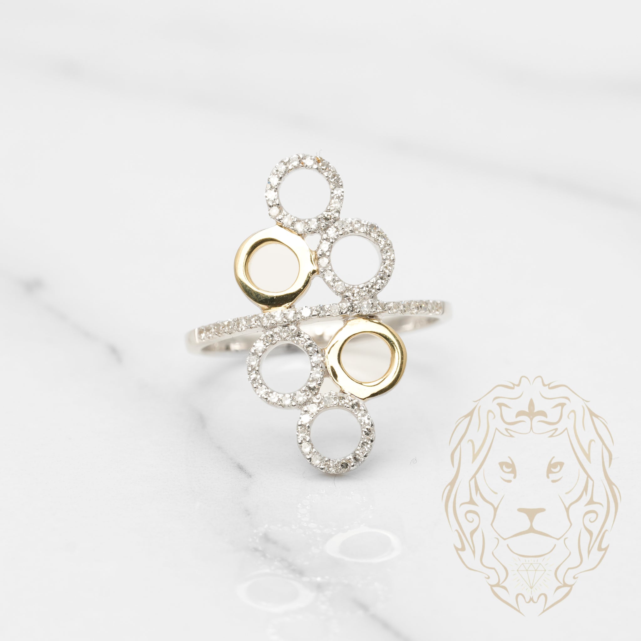 Cocktail ring - 10K two-tone yellow & white gold circles paved with natural diamonds 0.20CT - RIGD202