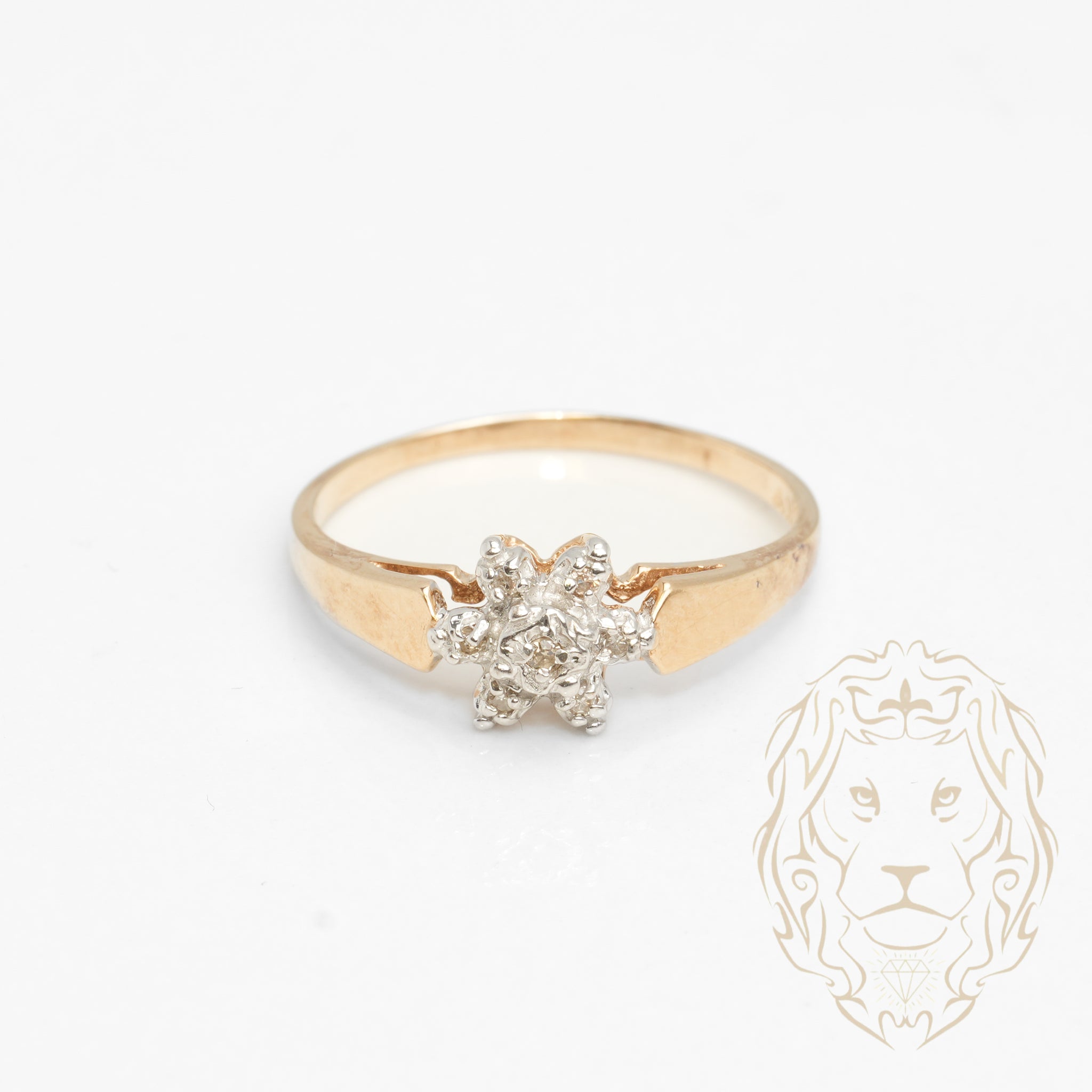 Ring - 10K two-tone yellow & white gold flower paved with natural diamonds 0.06CT - RIGD446