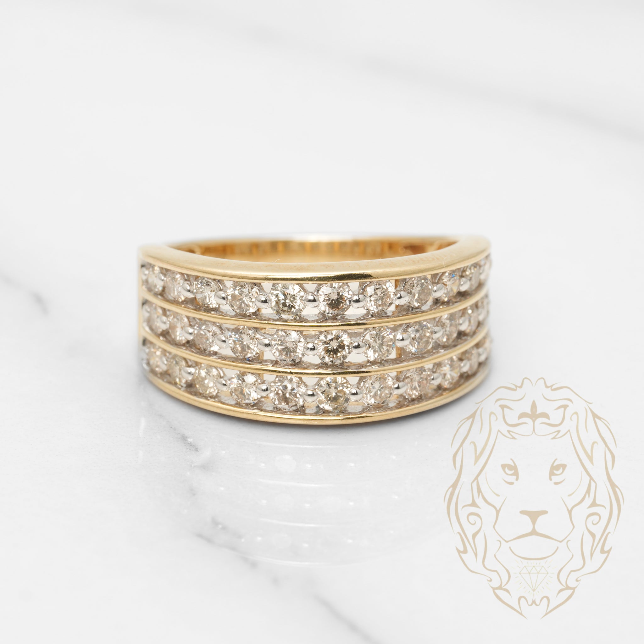 Ring - 10K Yellow Gold three rows of natural diamonds 1.20CT - RIGD234