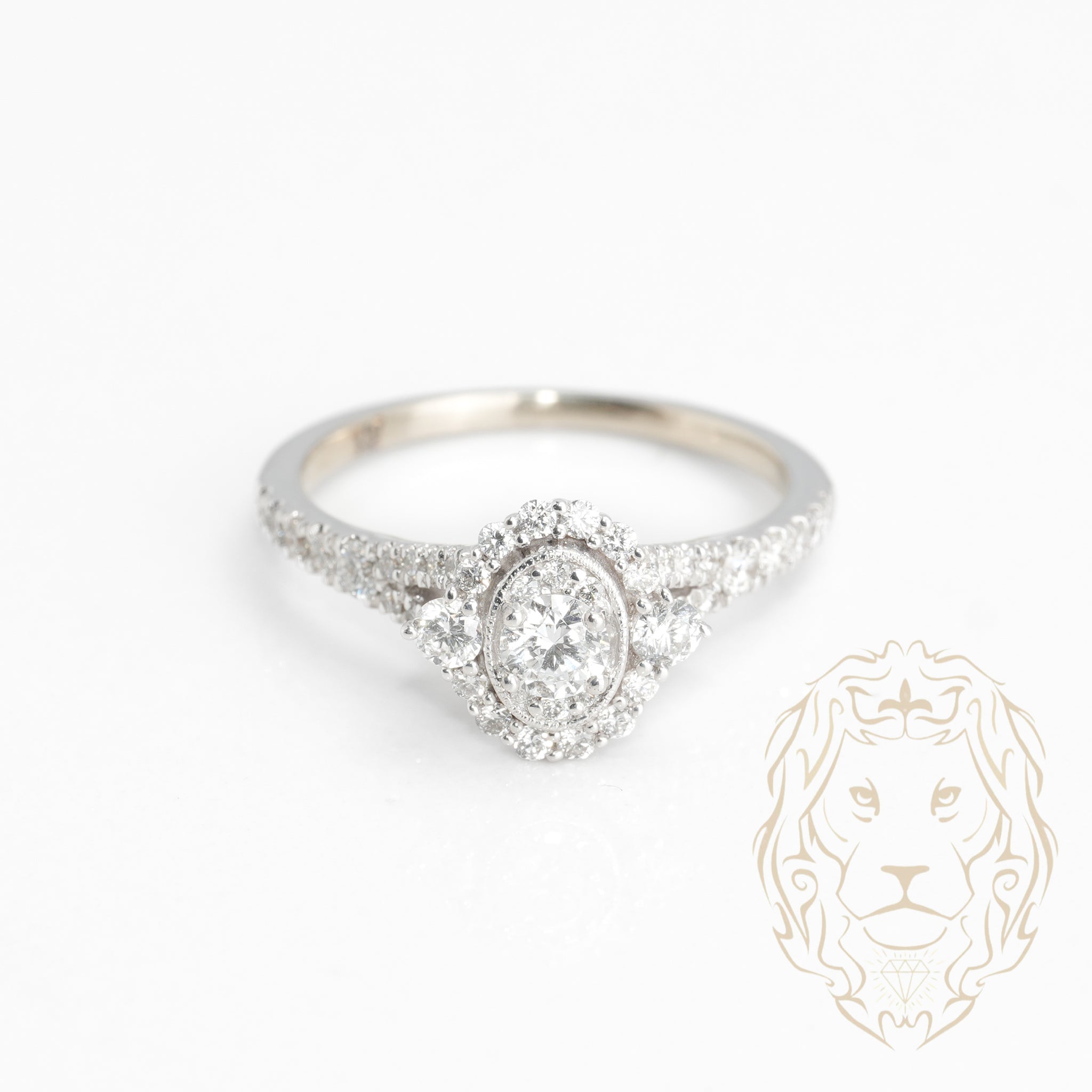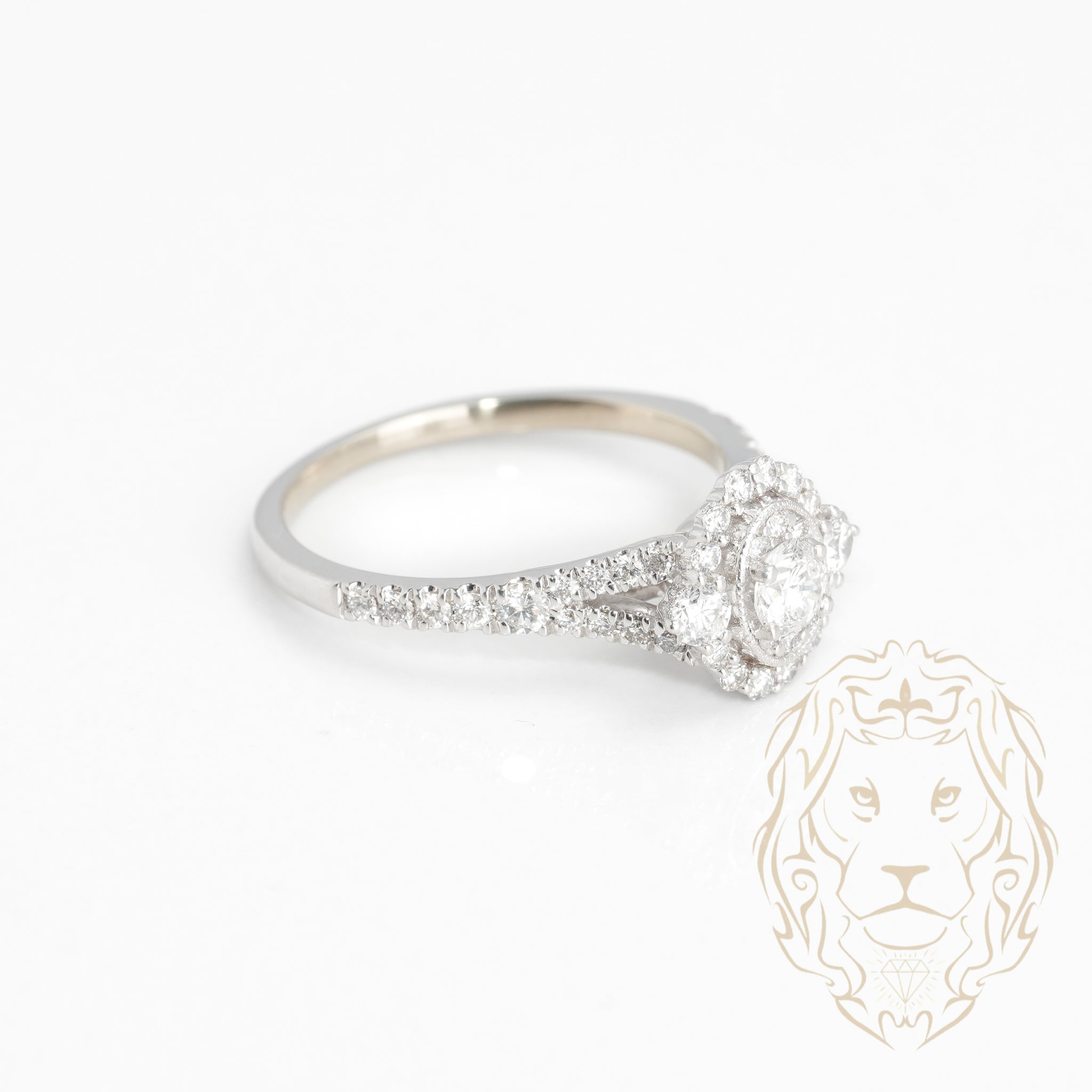Engagement ring - 14K gold halo art nouveau round brilliant cut natural diamonds 1.00CT - RIGD378