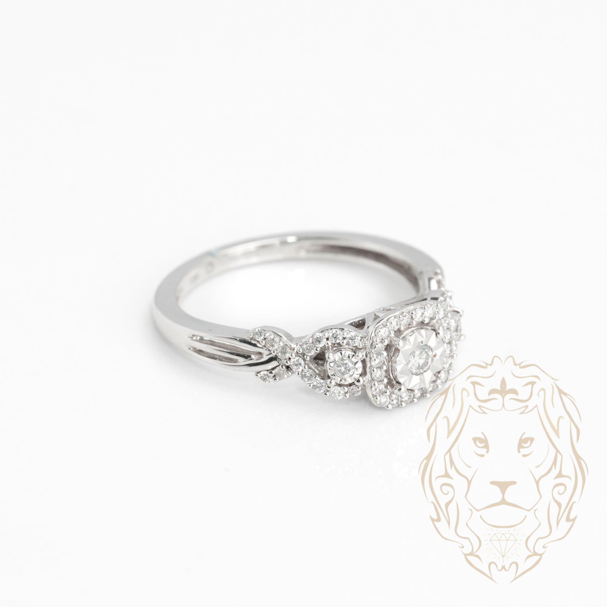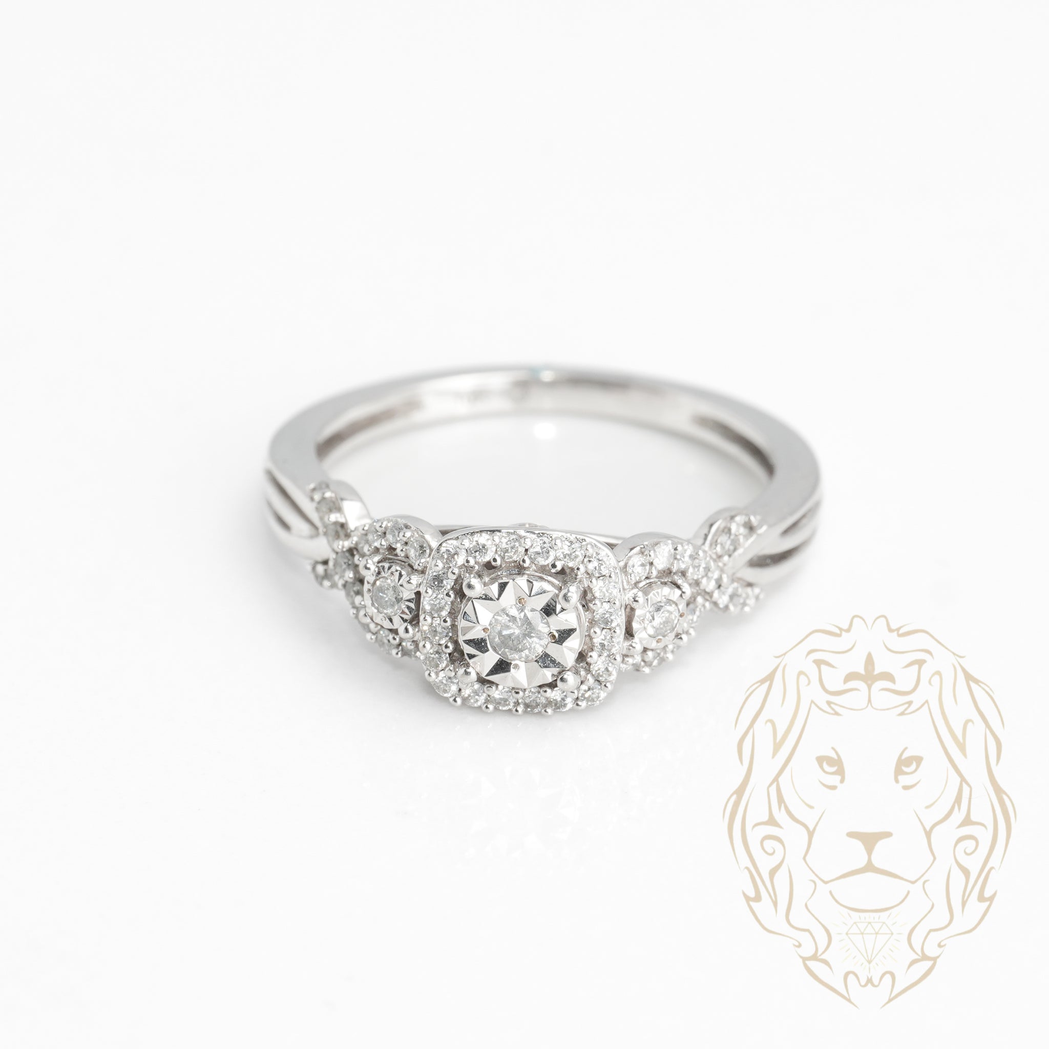 Engagement ring - 10K gold three stone halo illusion natural diamonds 0.15CT - RIGD356