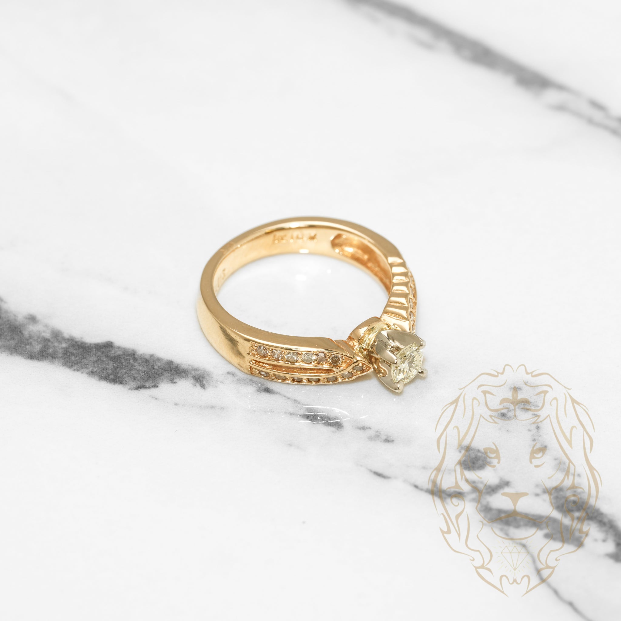 Engagement ring - 14K two-tone yellow & white gold lab brilliant cut diamond with split pave setting 0.20CT - RIGL008