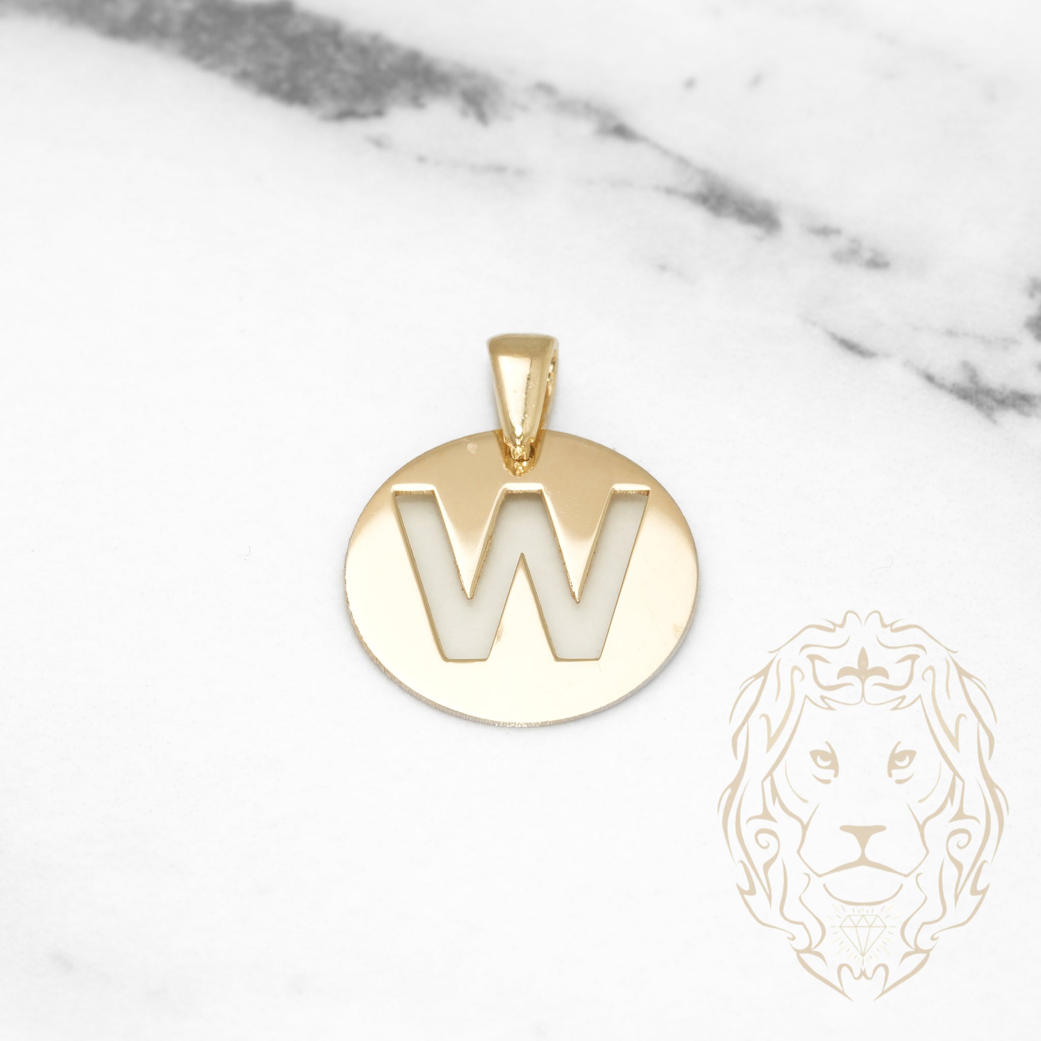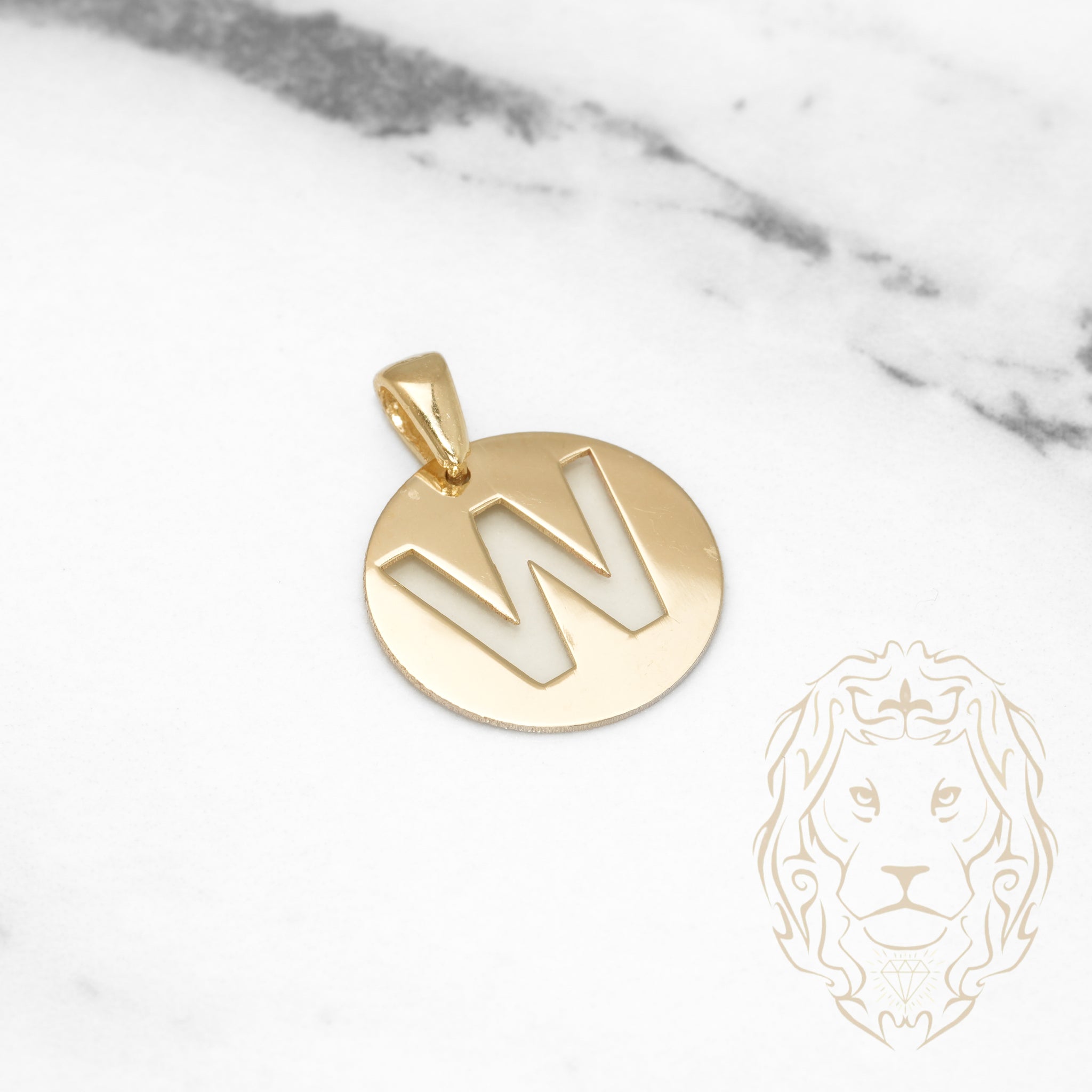 Pendant - 10K Yellow Gold "W" polished stencil letter style - PEG397