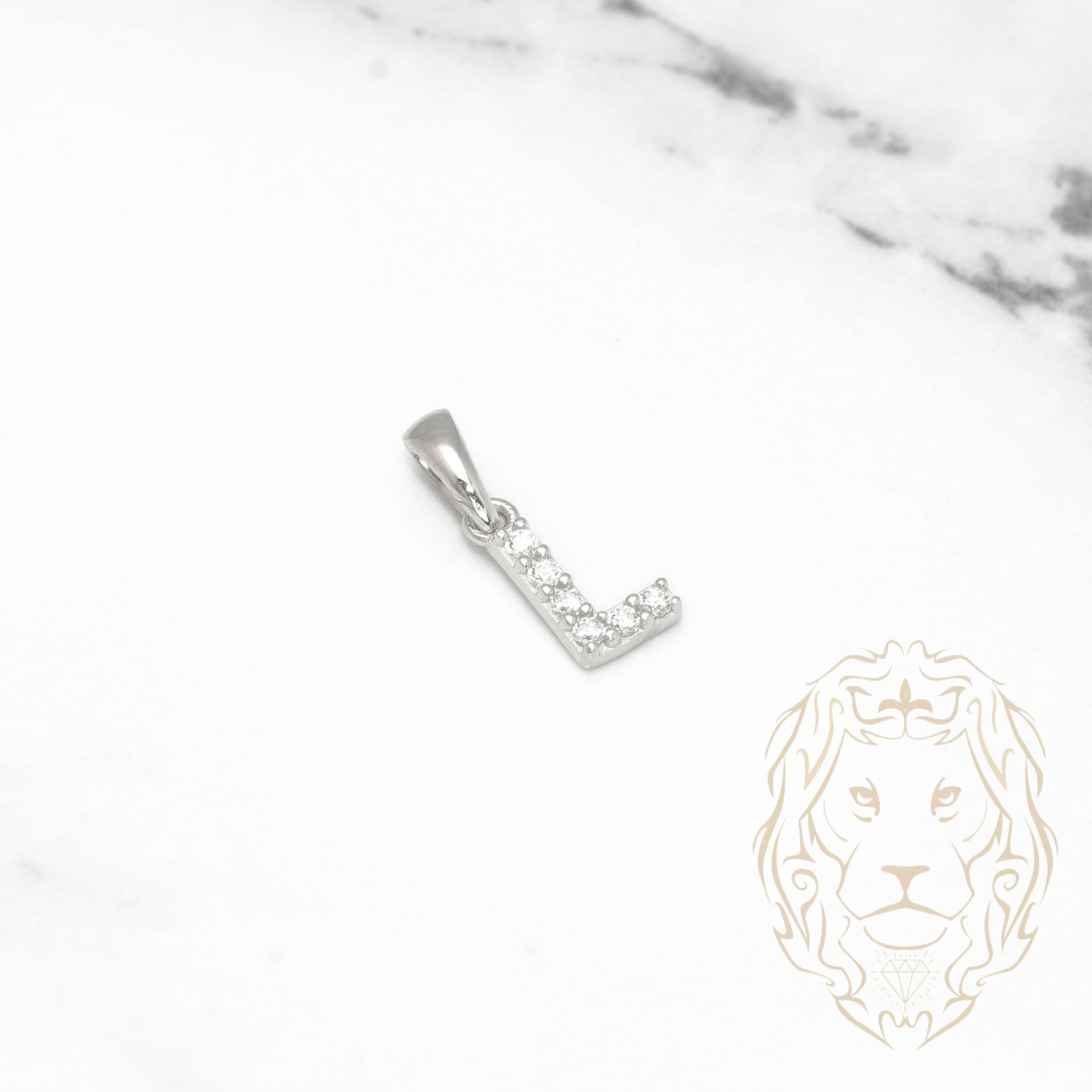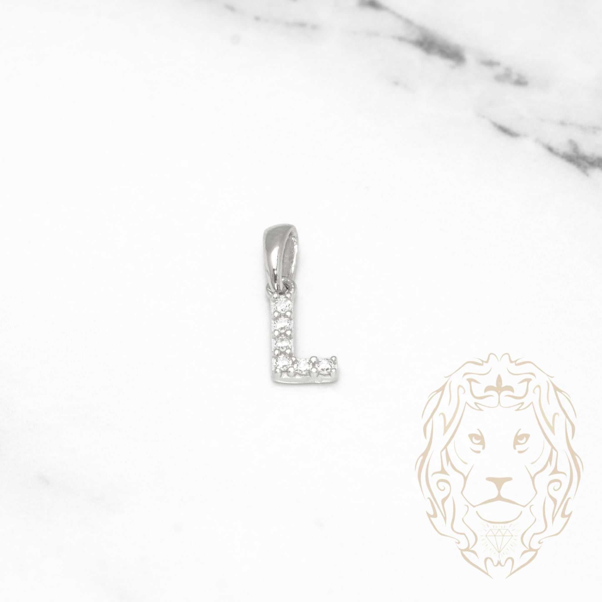Pendant - 10K white gold "L" mini cz pave - PEG490