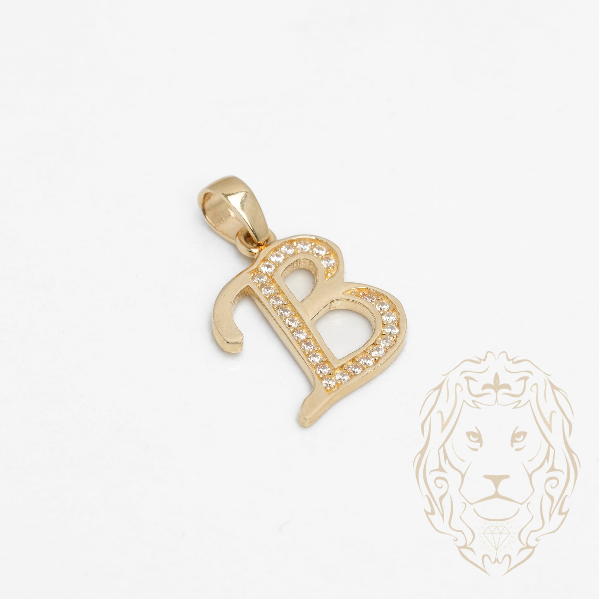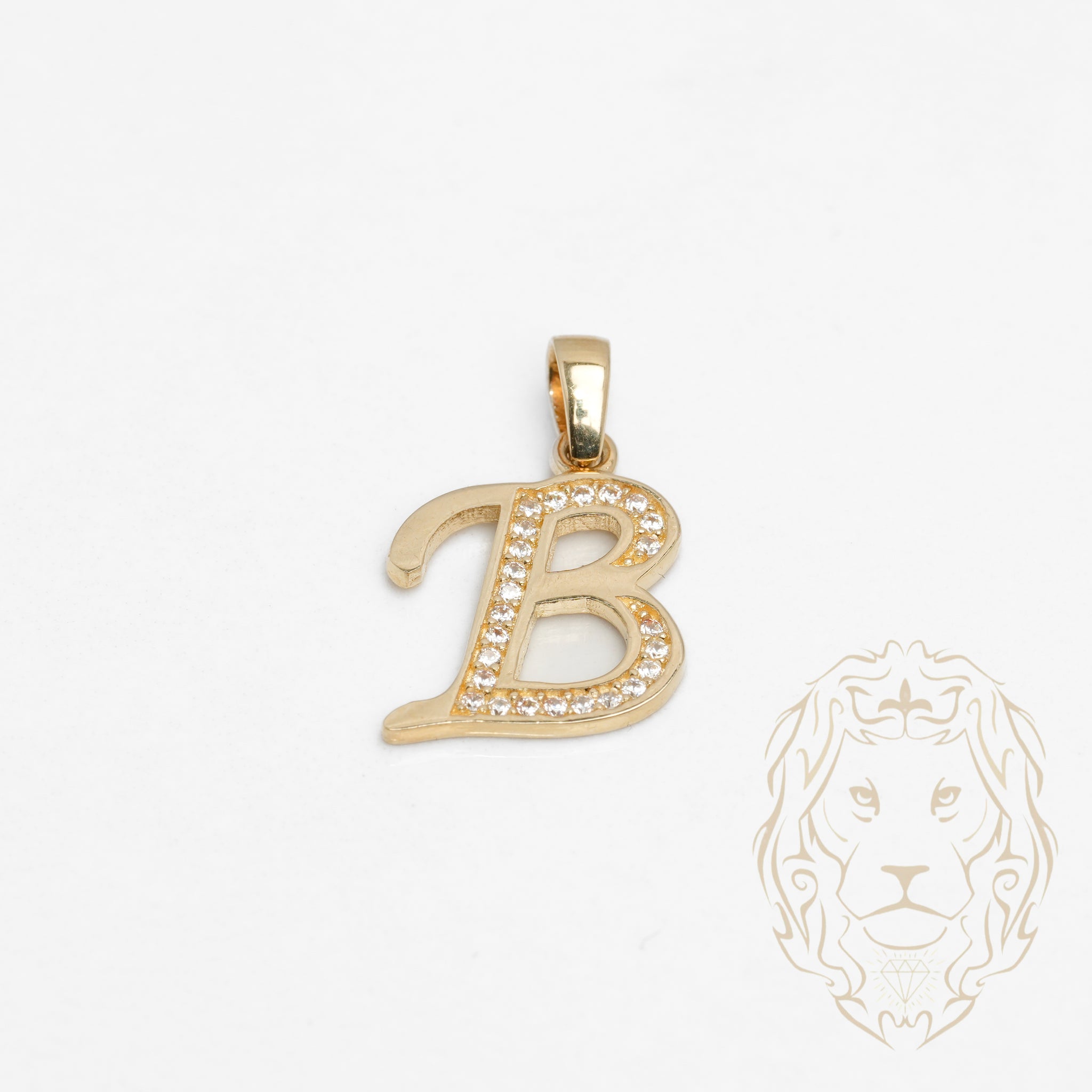 Pendentif - Or 10K jaune "B" script pavé de cz - PEG842