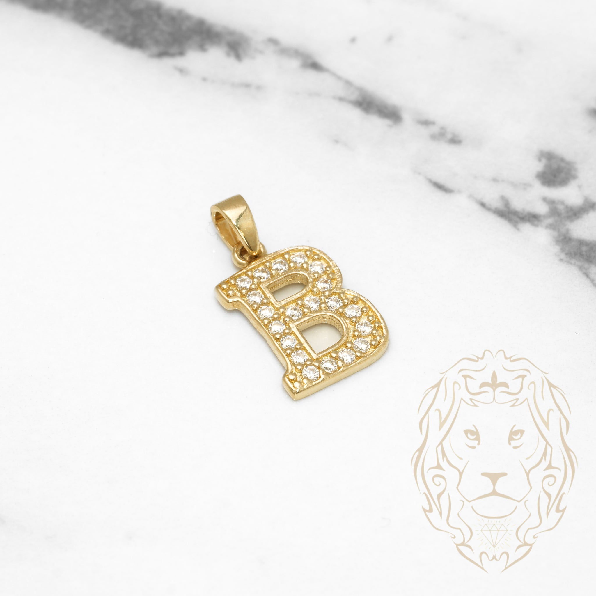 Pendant - 10K Yellow Gold "B" varsity style with cz pavement - PEG402