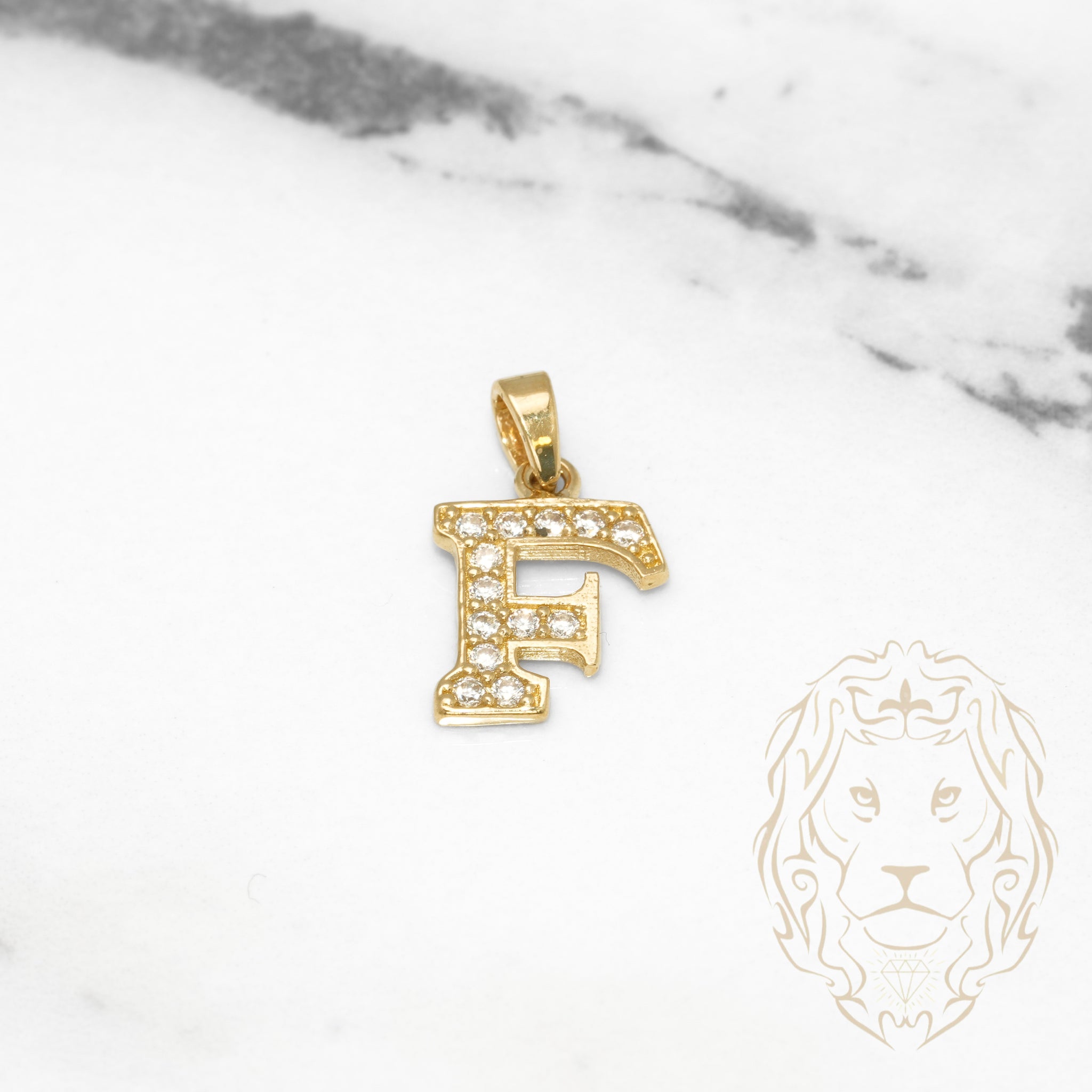 Pendant - 10K Yellow Gold "F" style varsity cz pavement - PEG406