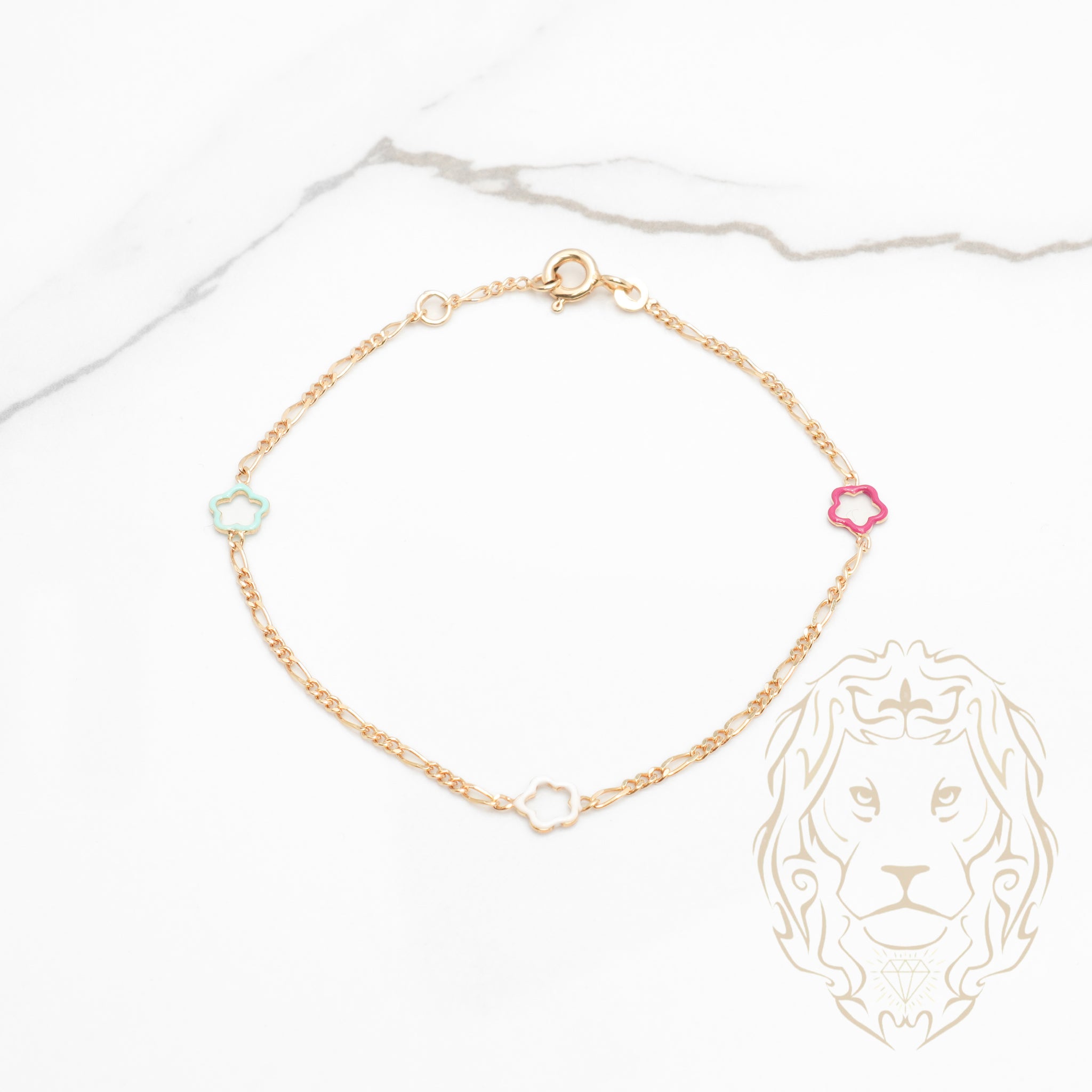Bracelet en or jaune 14K décoré de fleurs en émail multicolores. Un bijou vif et joyeux, parfait pour illuminer votre look.