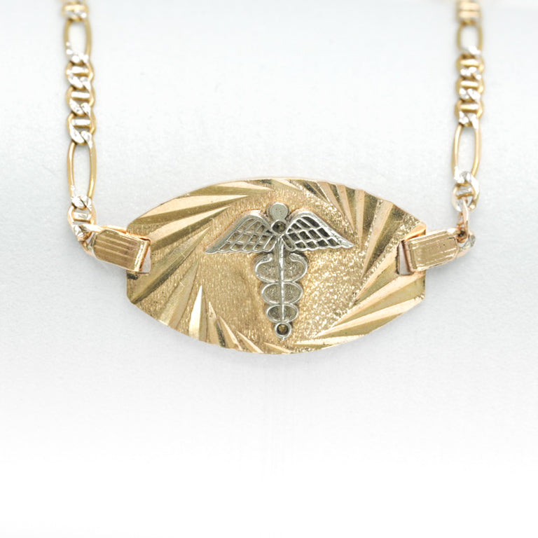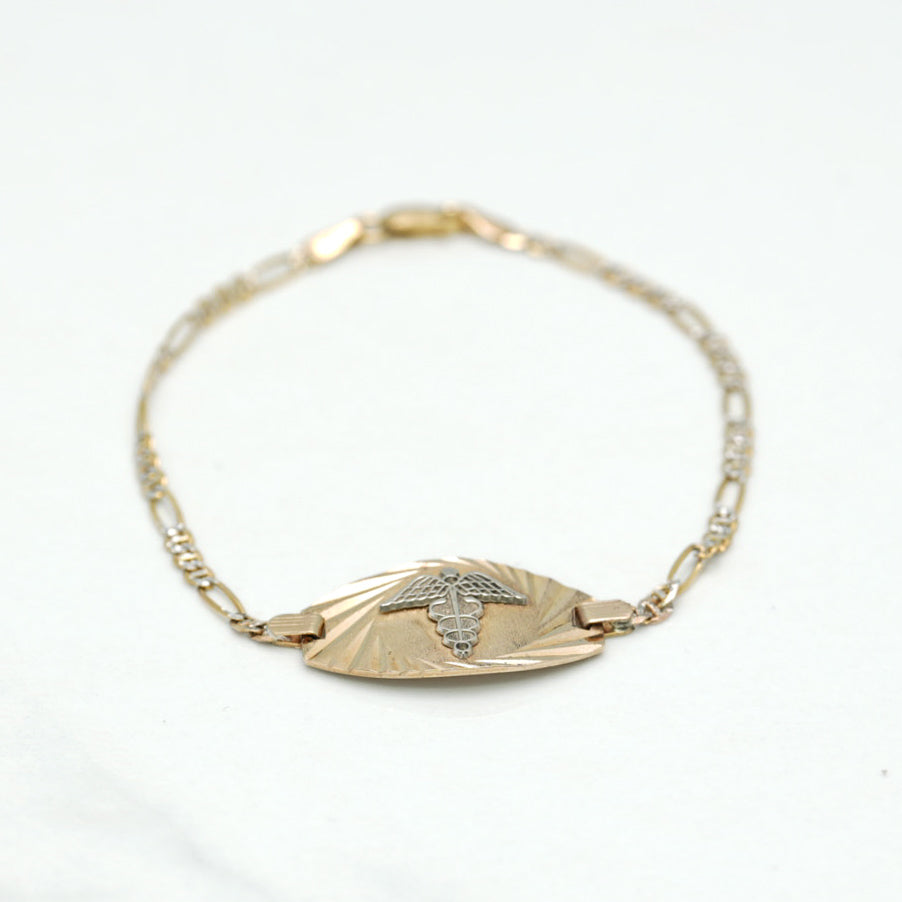 Unisex bracelet - 10K two-tone yellow & white medical gold with 7" diamond-cut figaro links - BRG171