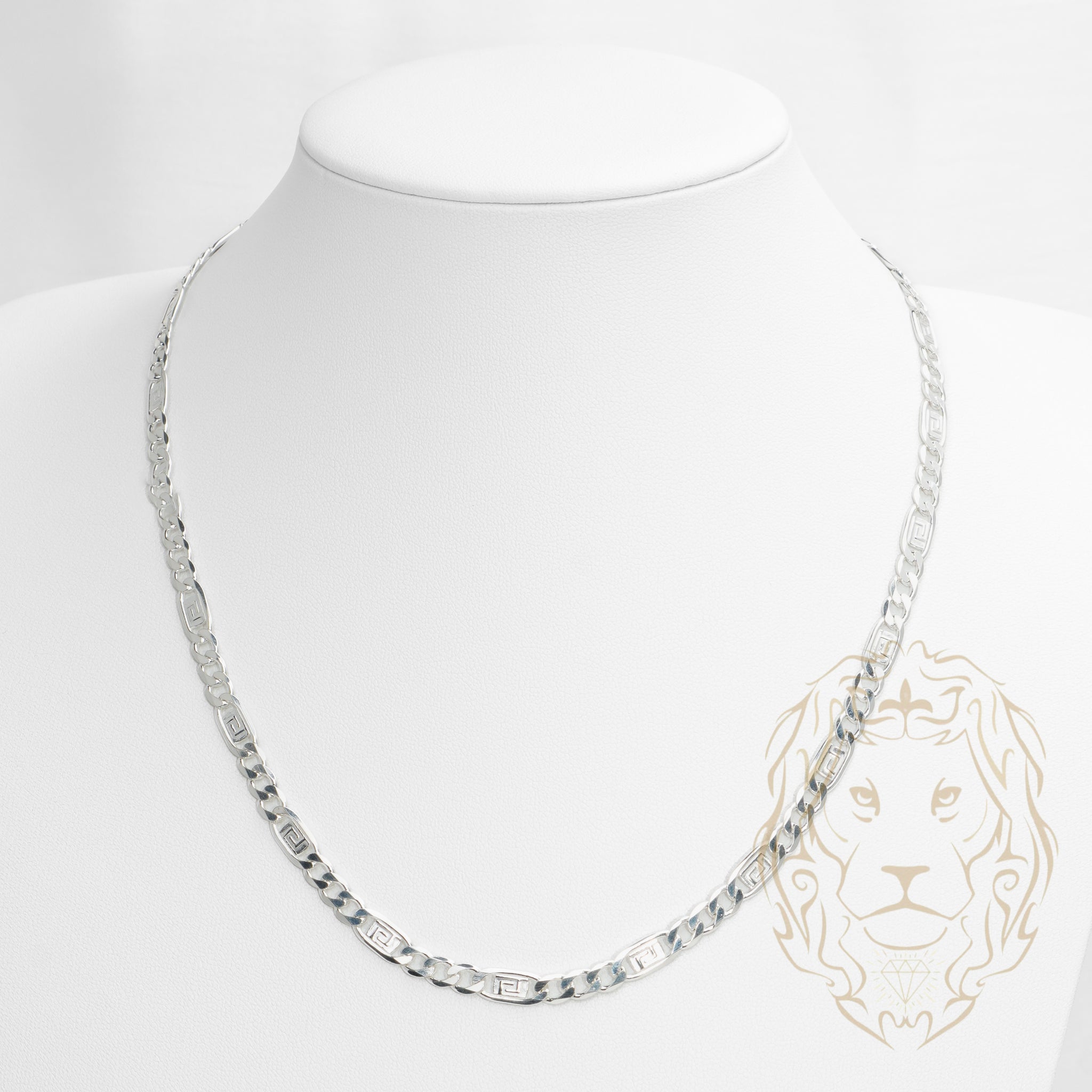 Cette chaîne Figaro 5.5mm en argent est ornée d’un motif Méduse inspiré, pour un style unique et affirmé.