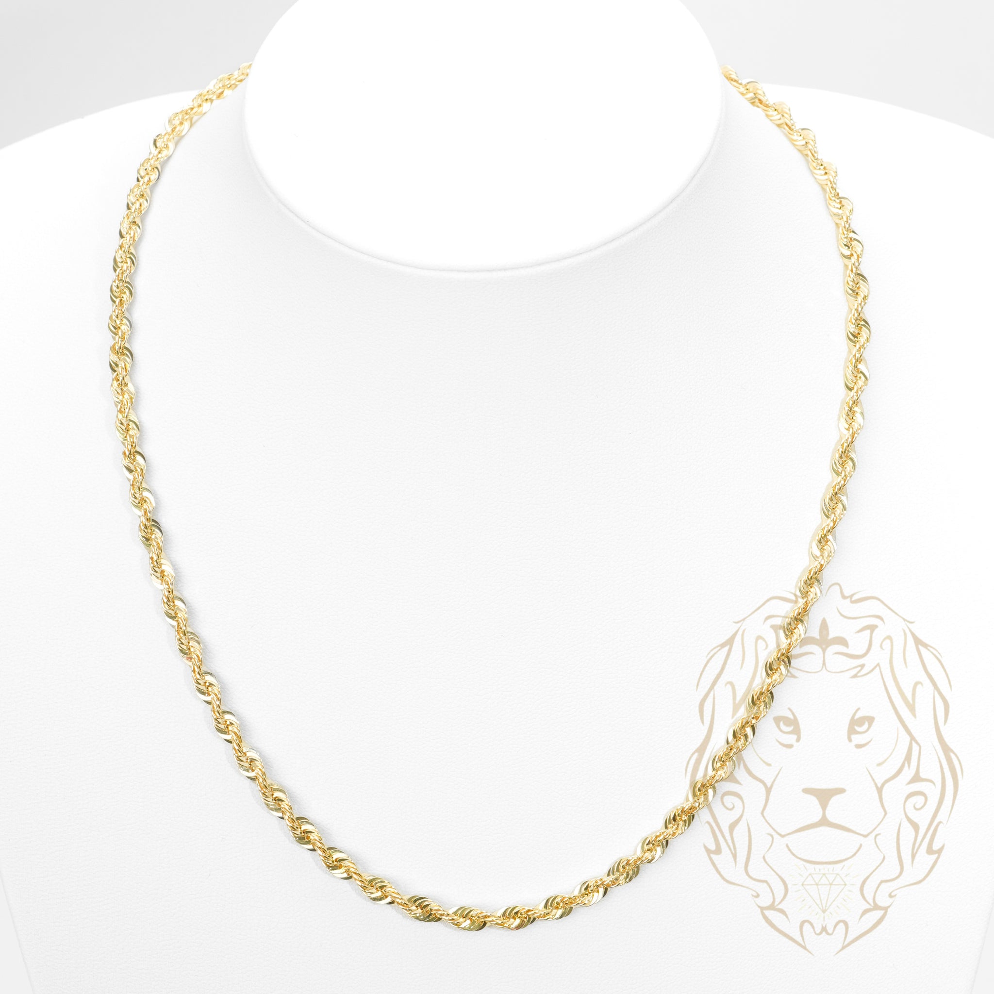 Chaîne torsade en or jaune 10K 4.4mm, travaillée au laser pour une brillance exceptionnelle. Une pièce élégante et intemporelle.