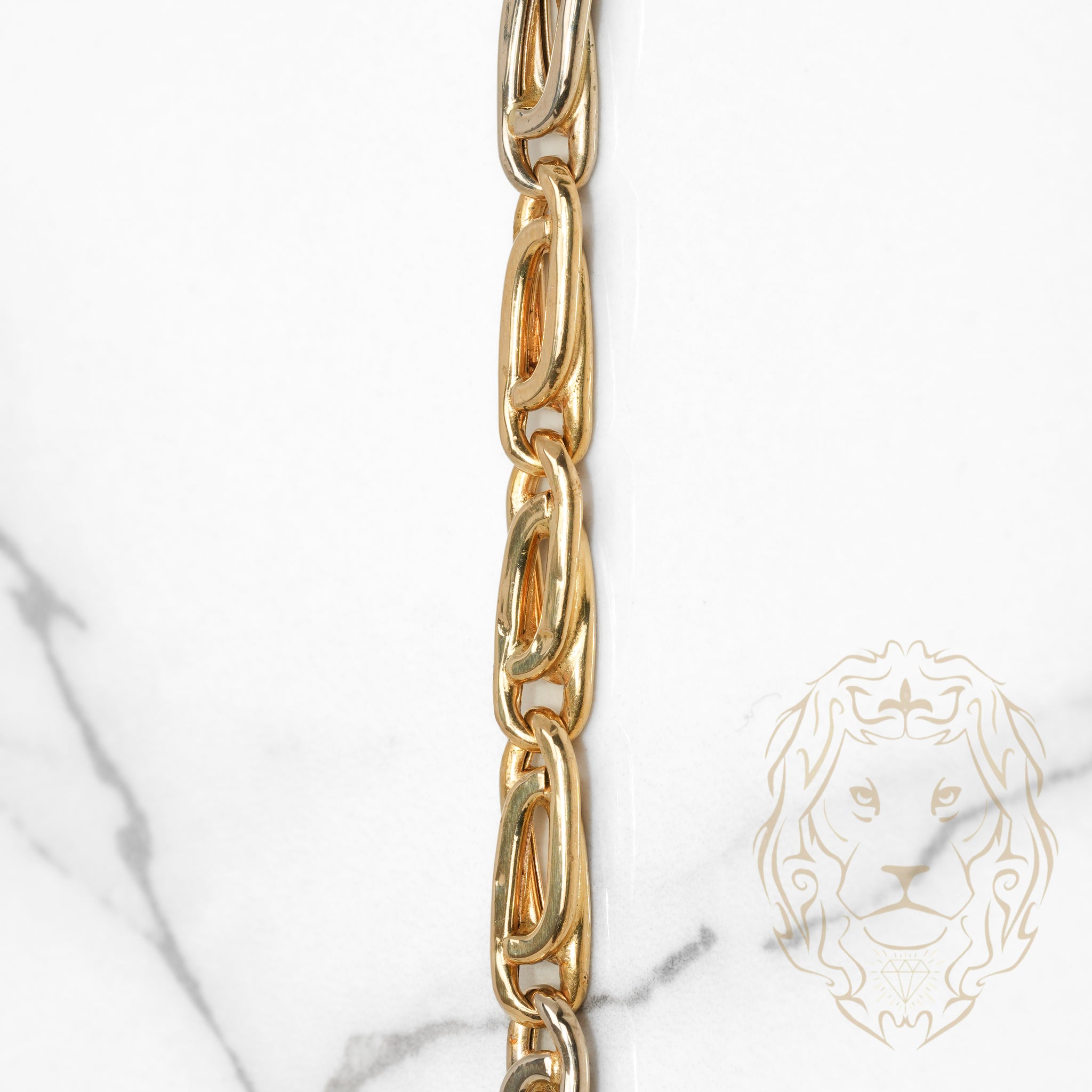 La chaîne en or 18K deux tons présente des maillons marin capri de 5.3mm, parfait pour un style à la fois audacieux et élégant.