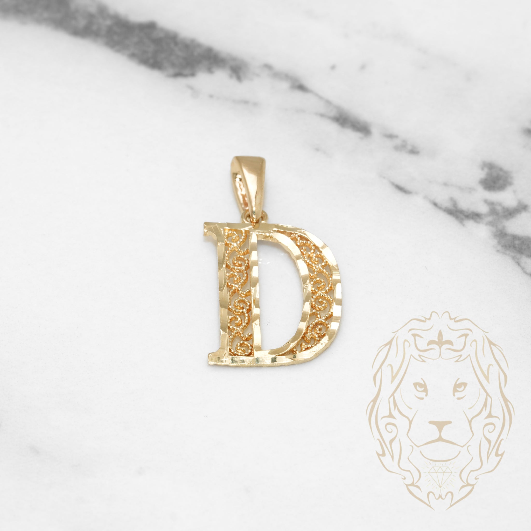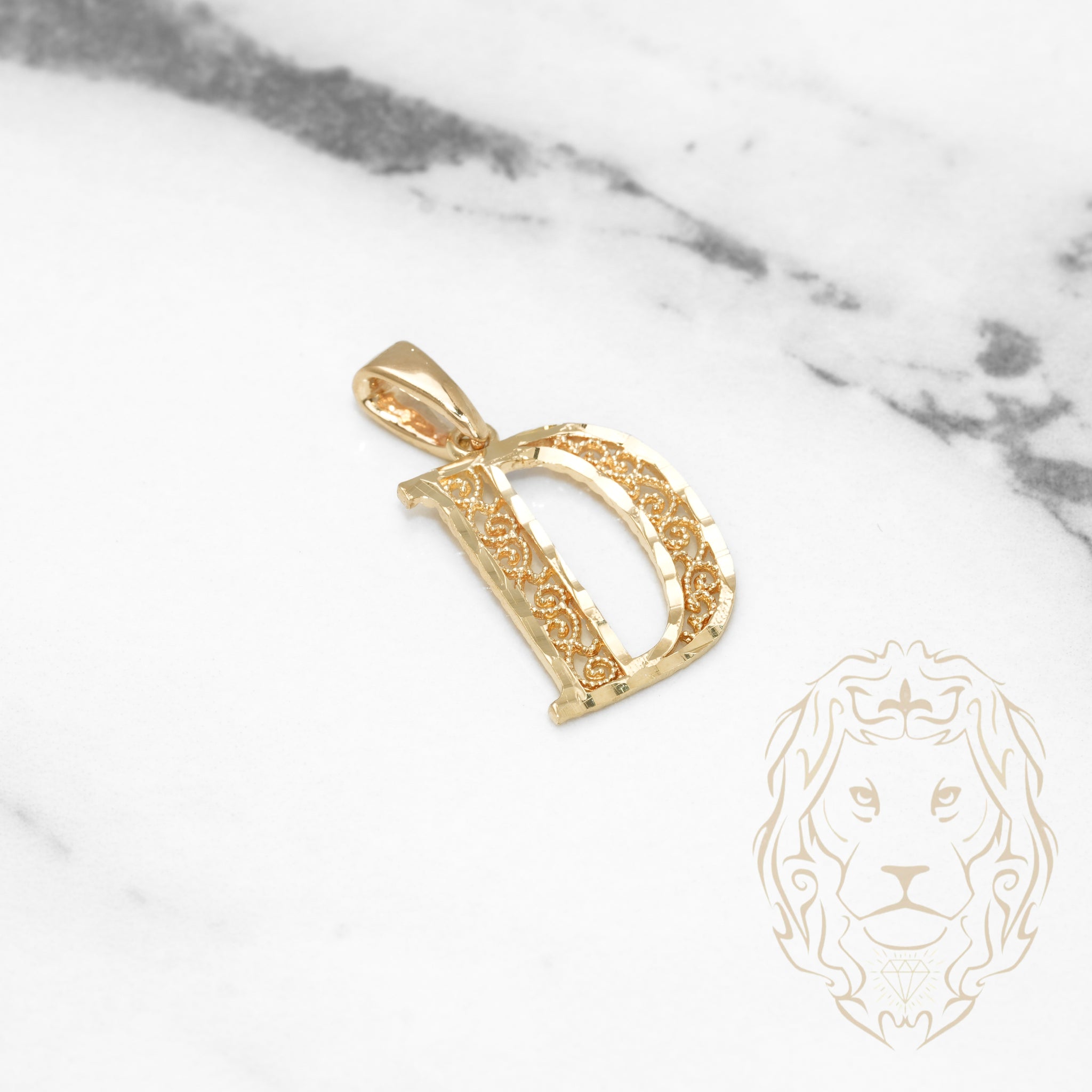 Pendant - 10K Yellow Gold "D" Swirl & Diamond Cut - PEG430