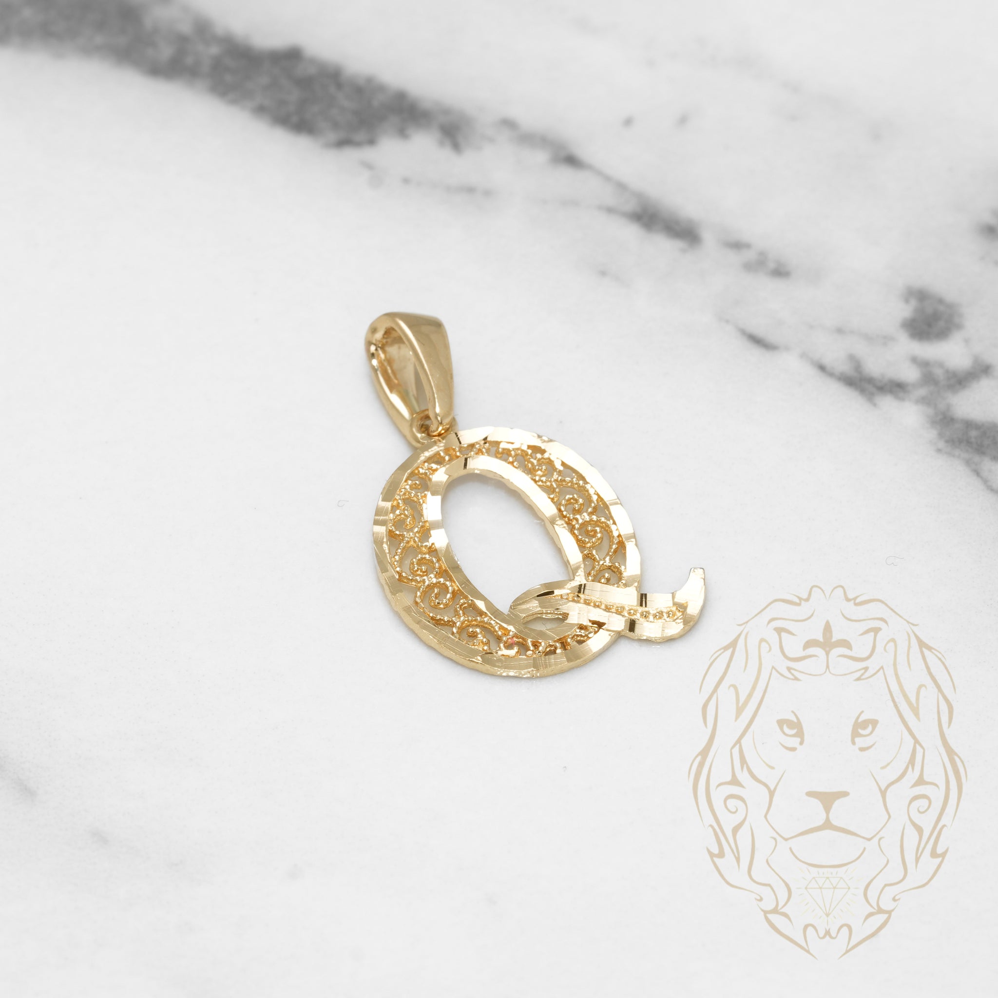 Pendant - 10K Yellow Gold "Q" Swirl & Diamond Cut - PEG443