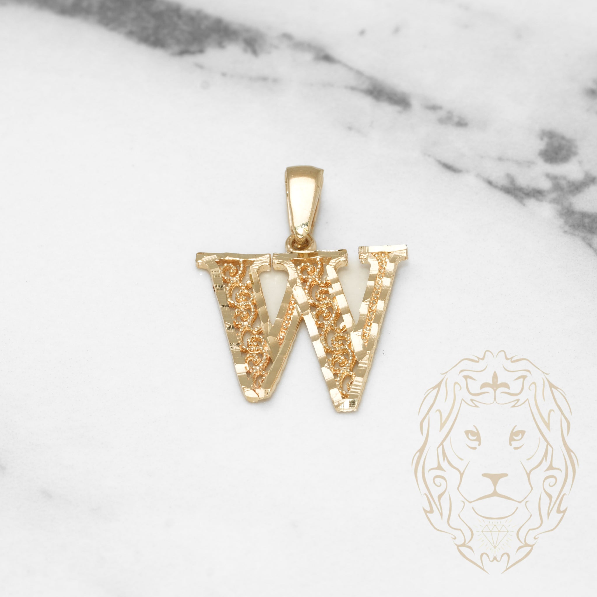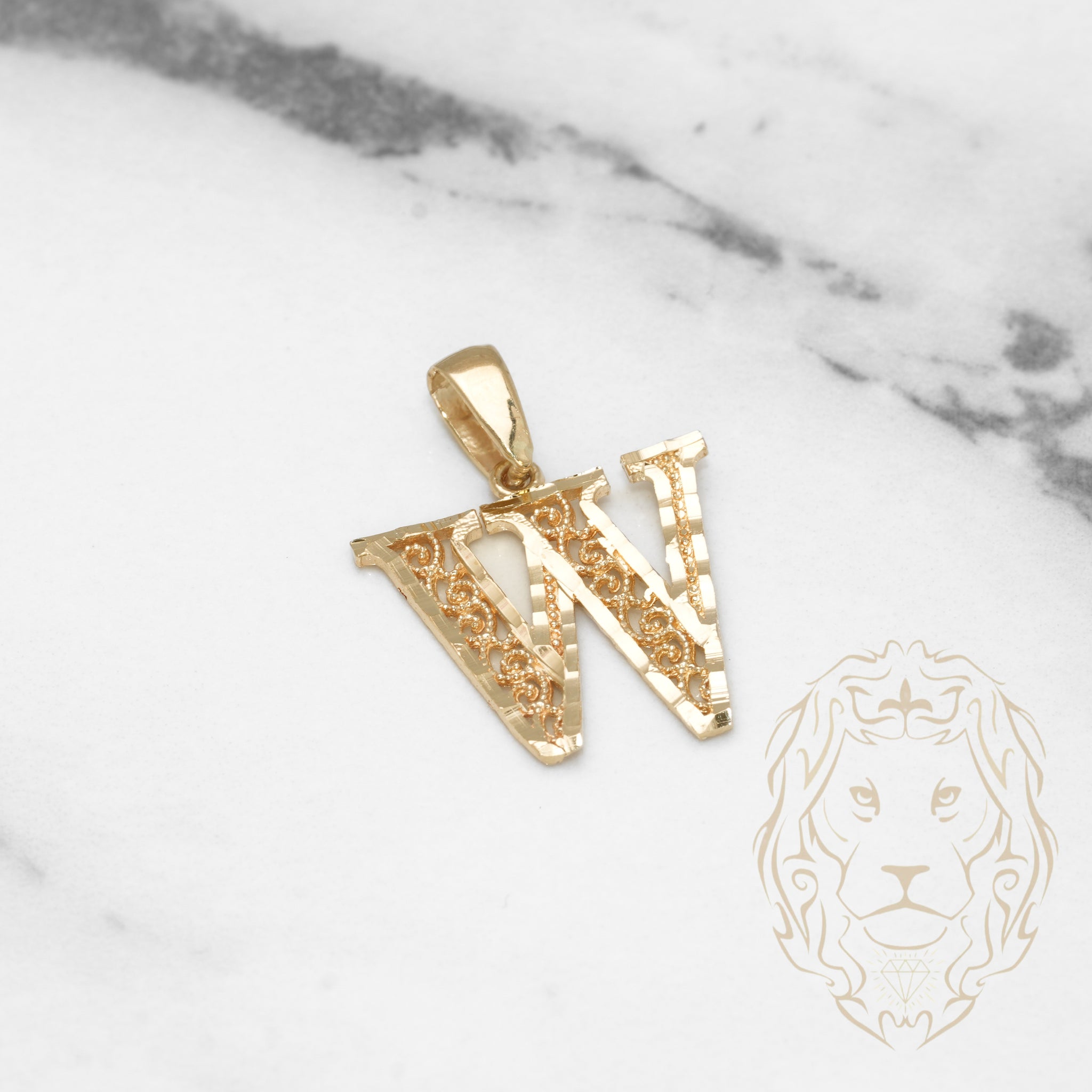 Pendant - 10K Yellow Gold "W" Swirl & Diamond Cut - PEG449