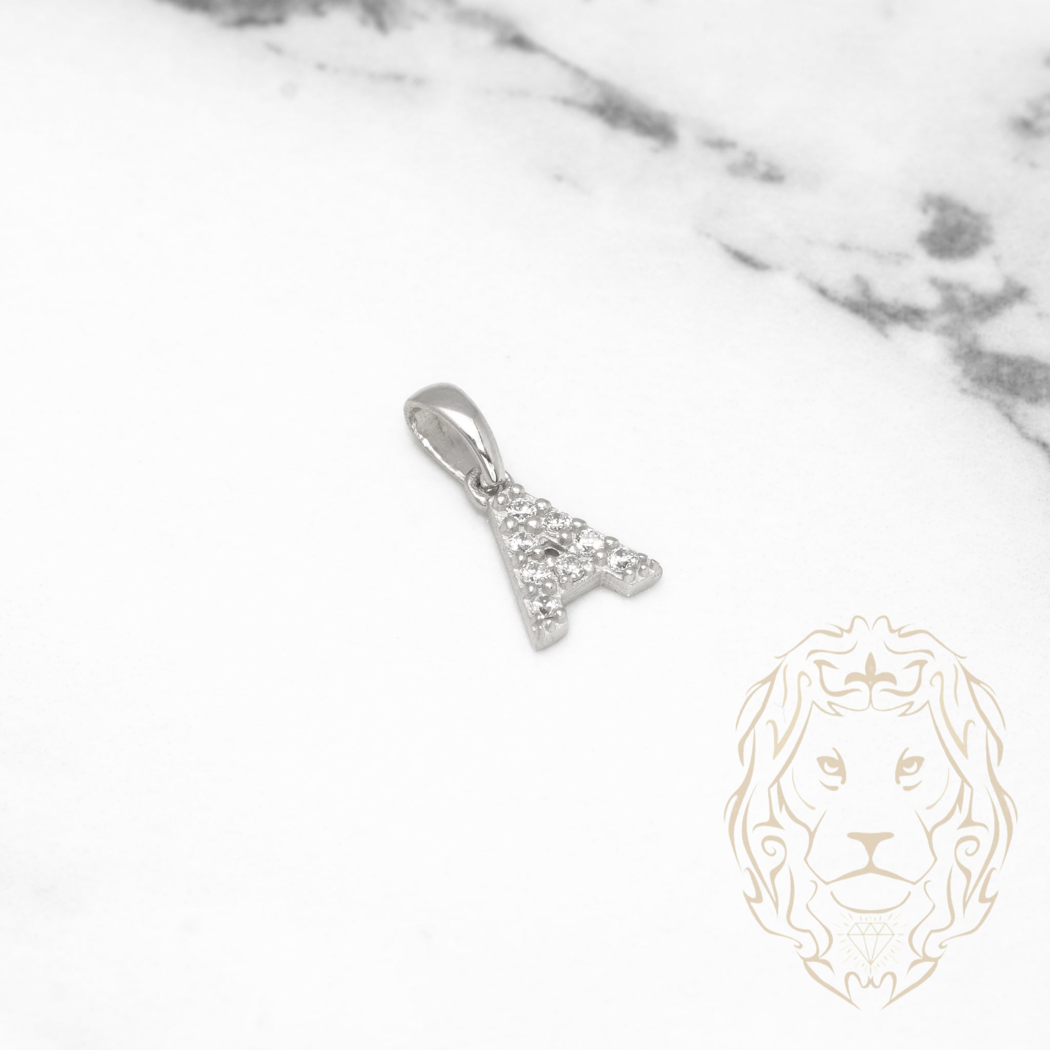 Ce pendentif en or blanc 10K avec la lettre "A", agrémenté de pavés cz, est parfait pour ajouter une touche lumineuse à votre style.