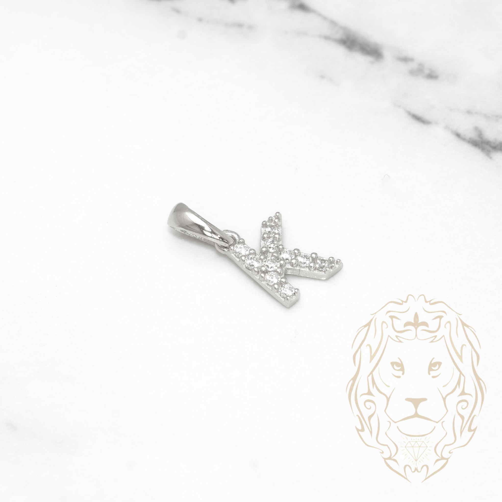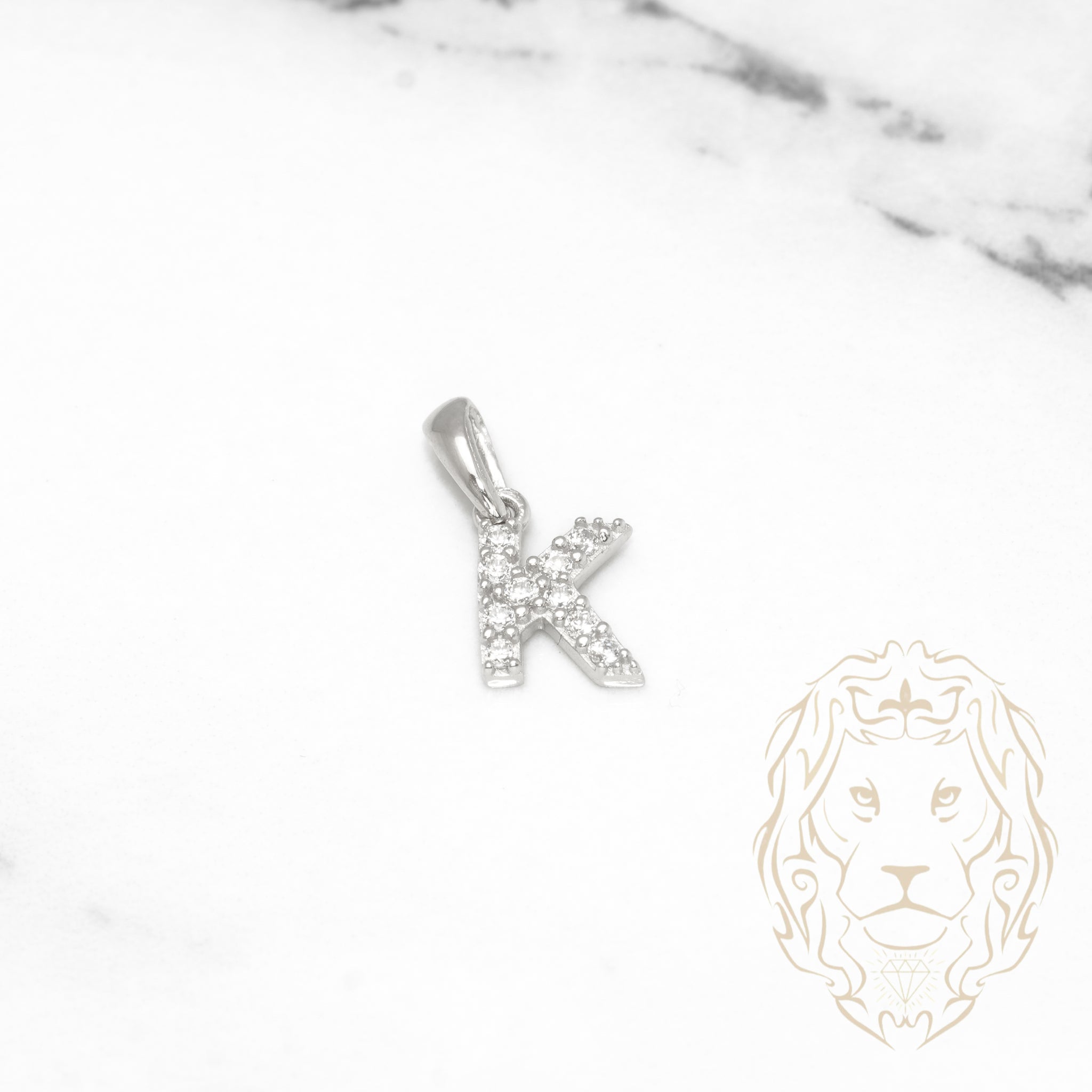Pendant - 10K white gold "K" mini cz pave - PEG489