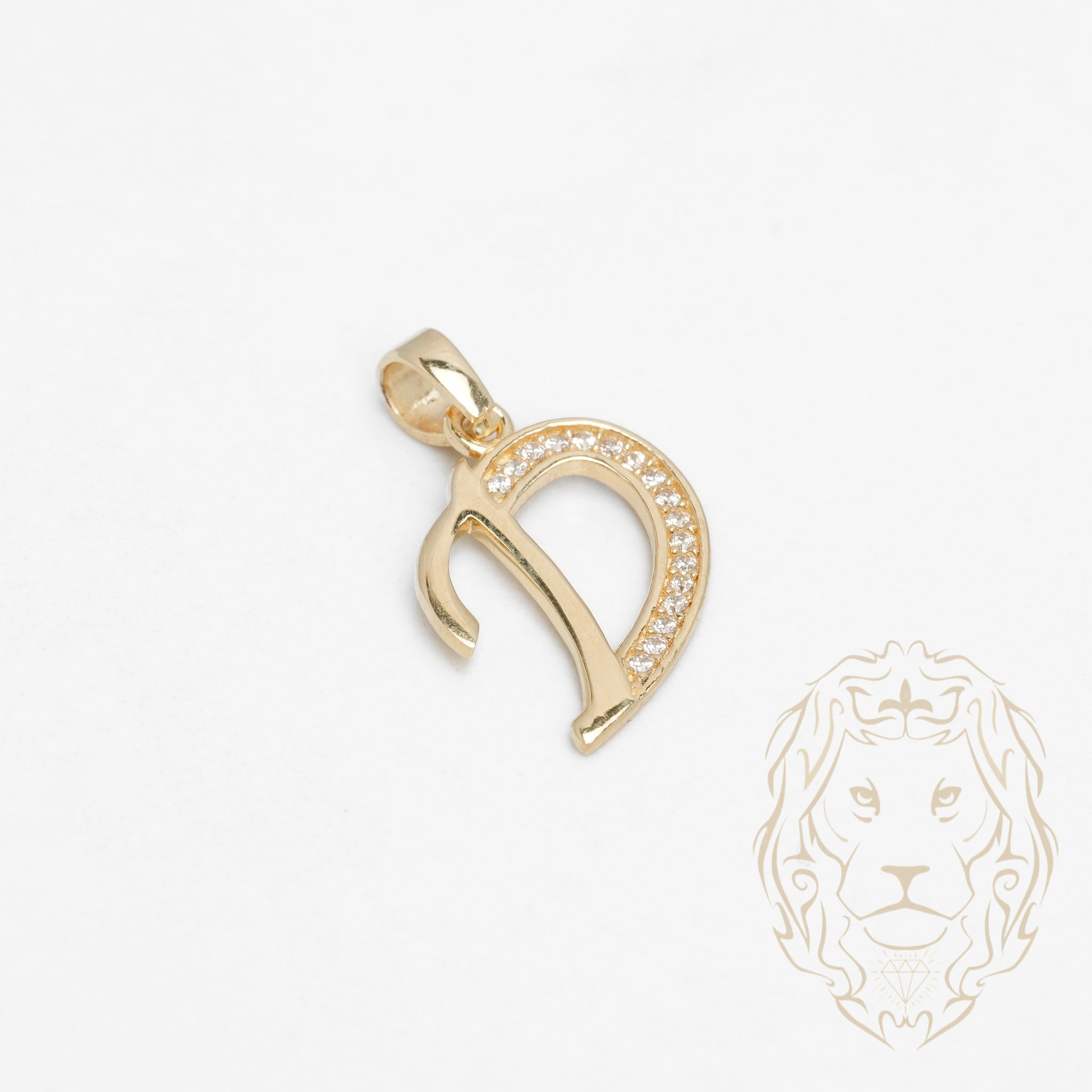Lettre “D” en or jaune 10K, calligraphie script sertie de CZ pour un éclat chic au quotidien.
