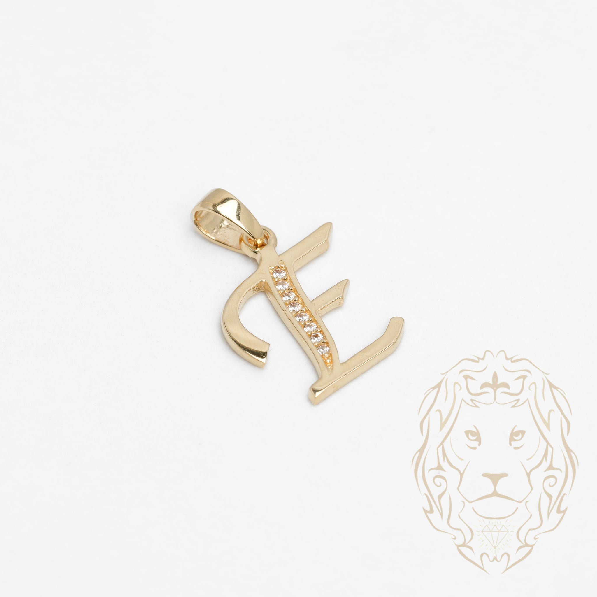 Lettre “E” en or jaune 10K, détail script pavé de CZ, raffiné et facile à superposer.