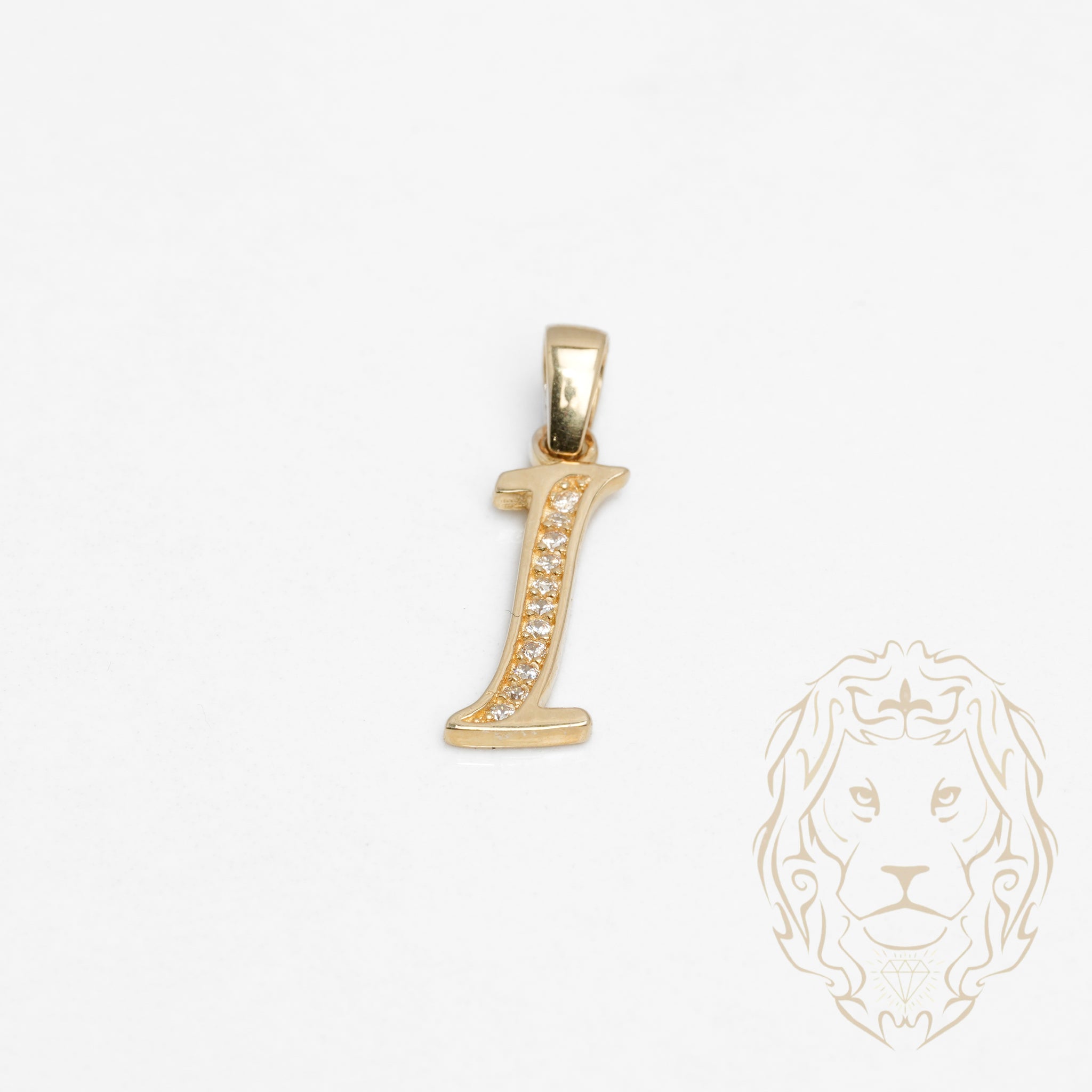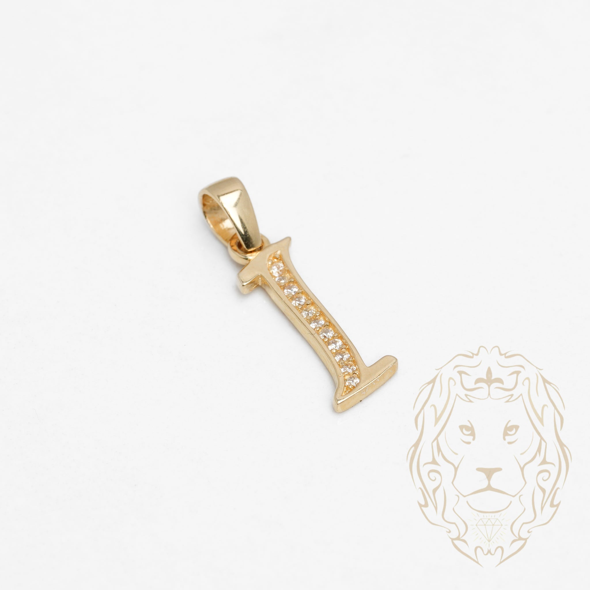 Lettre “I” en or jaune 10K, design épuré en script pavé de CZ, minimaliste et brillant.