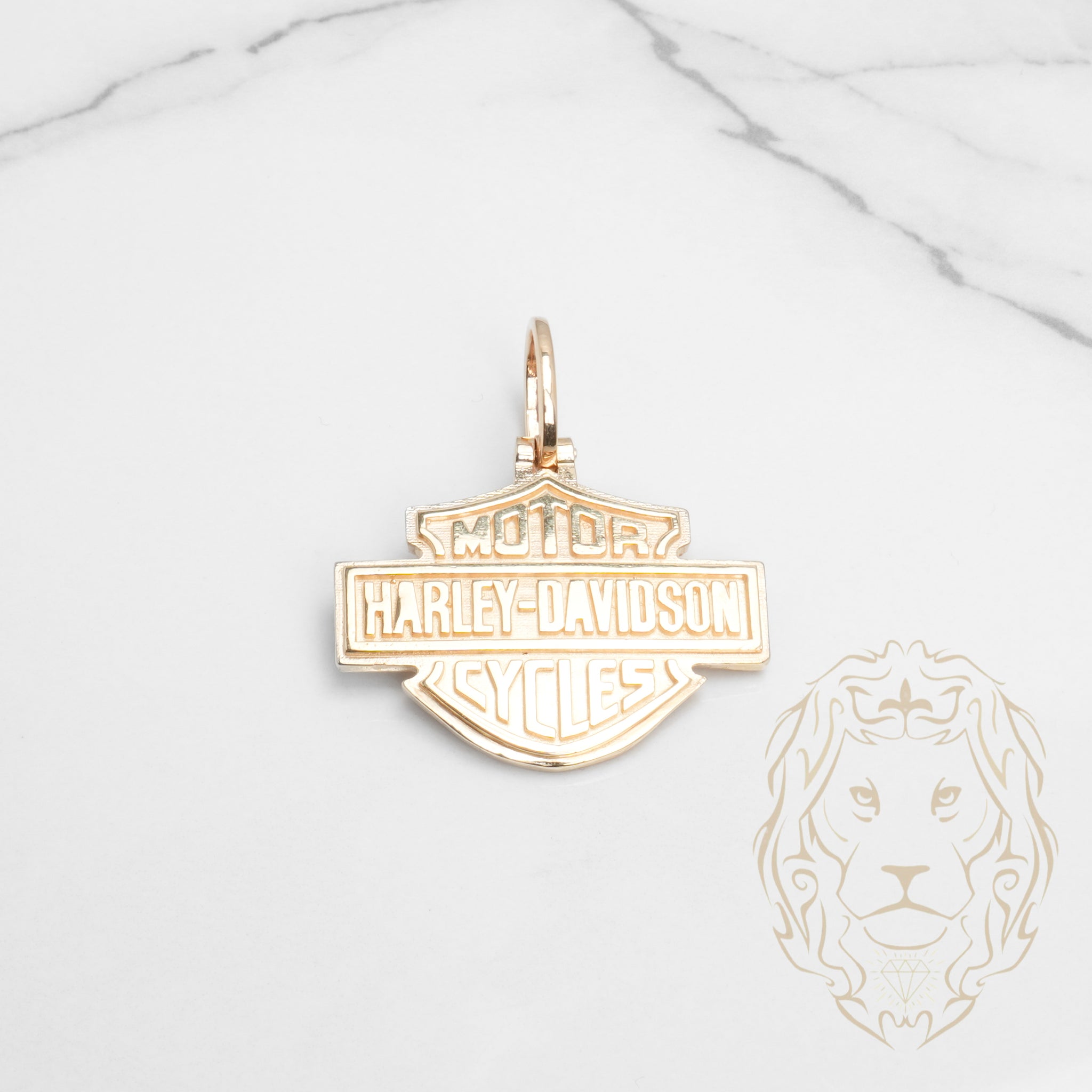 Pendentif en or jaune 10K arborant le logo emblématique Harley Davidson. Un bijou pour les passionnés de route et d’indépendance.