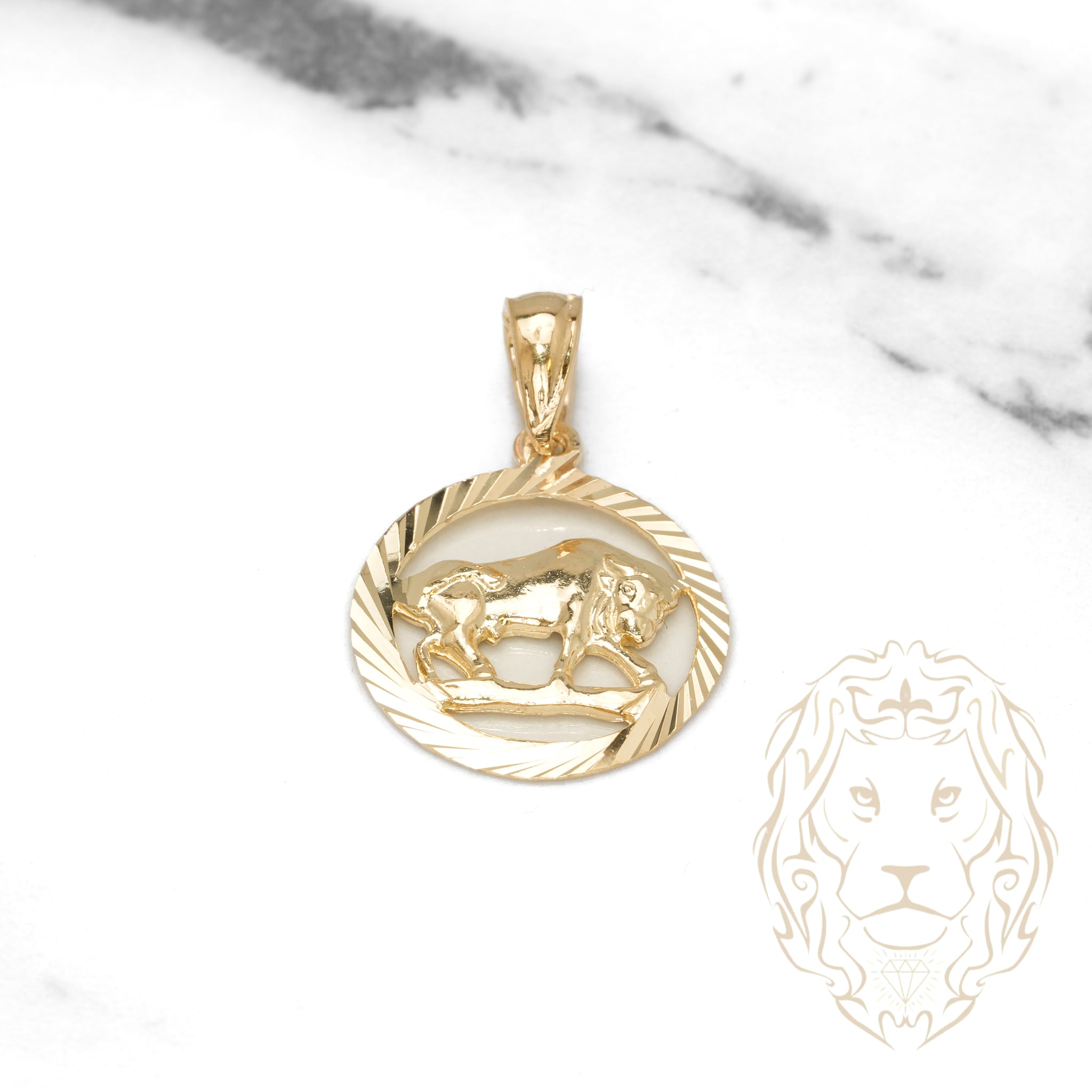 Pendentif - Or 10K jaune zodiaque Taureau coupe diamant - PEG824