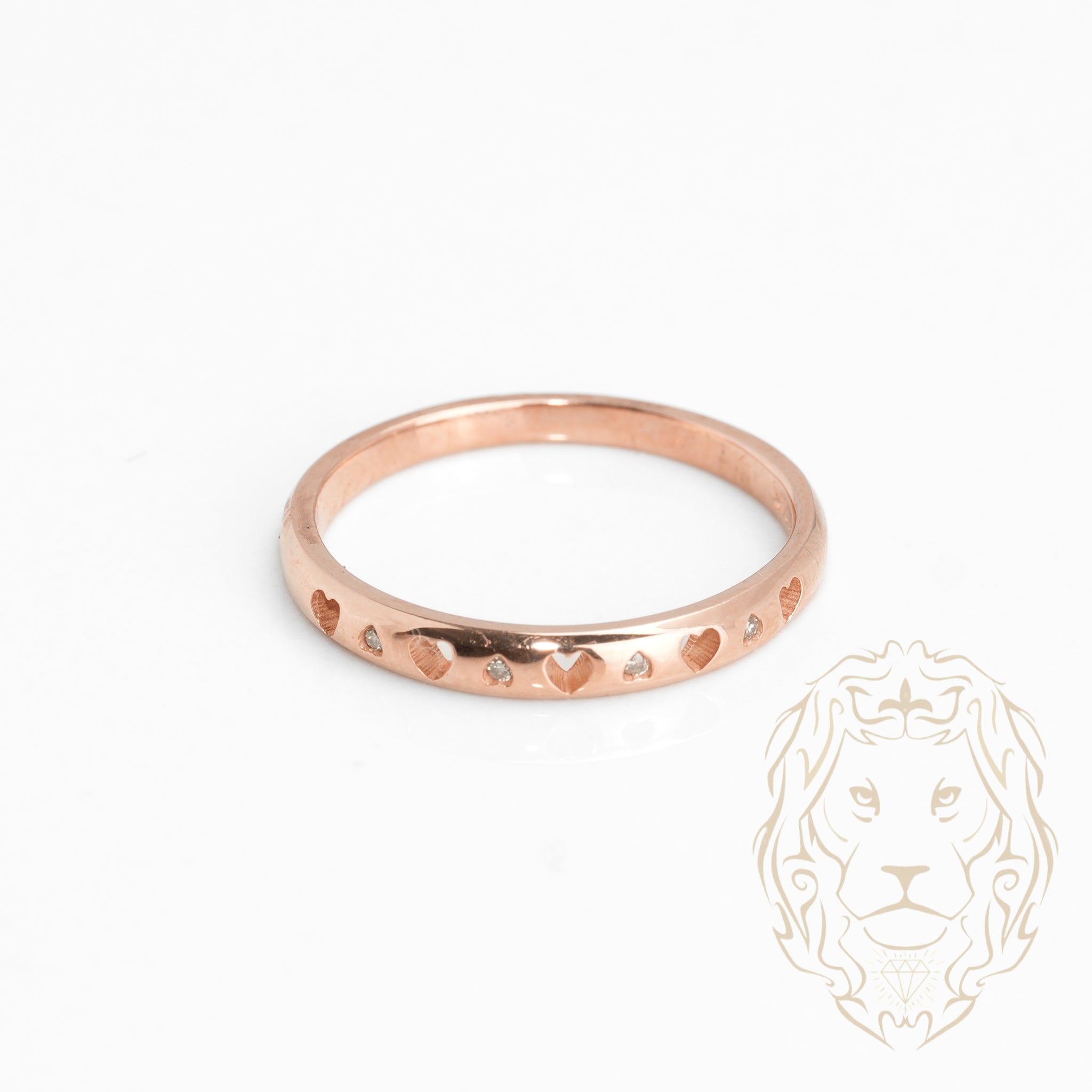 Ring - 10K pink gold set with 0.06CT natural diamonds & heart cut-outs - RIGD385