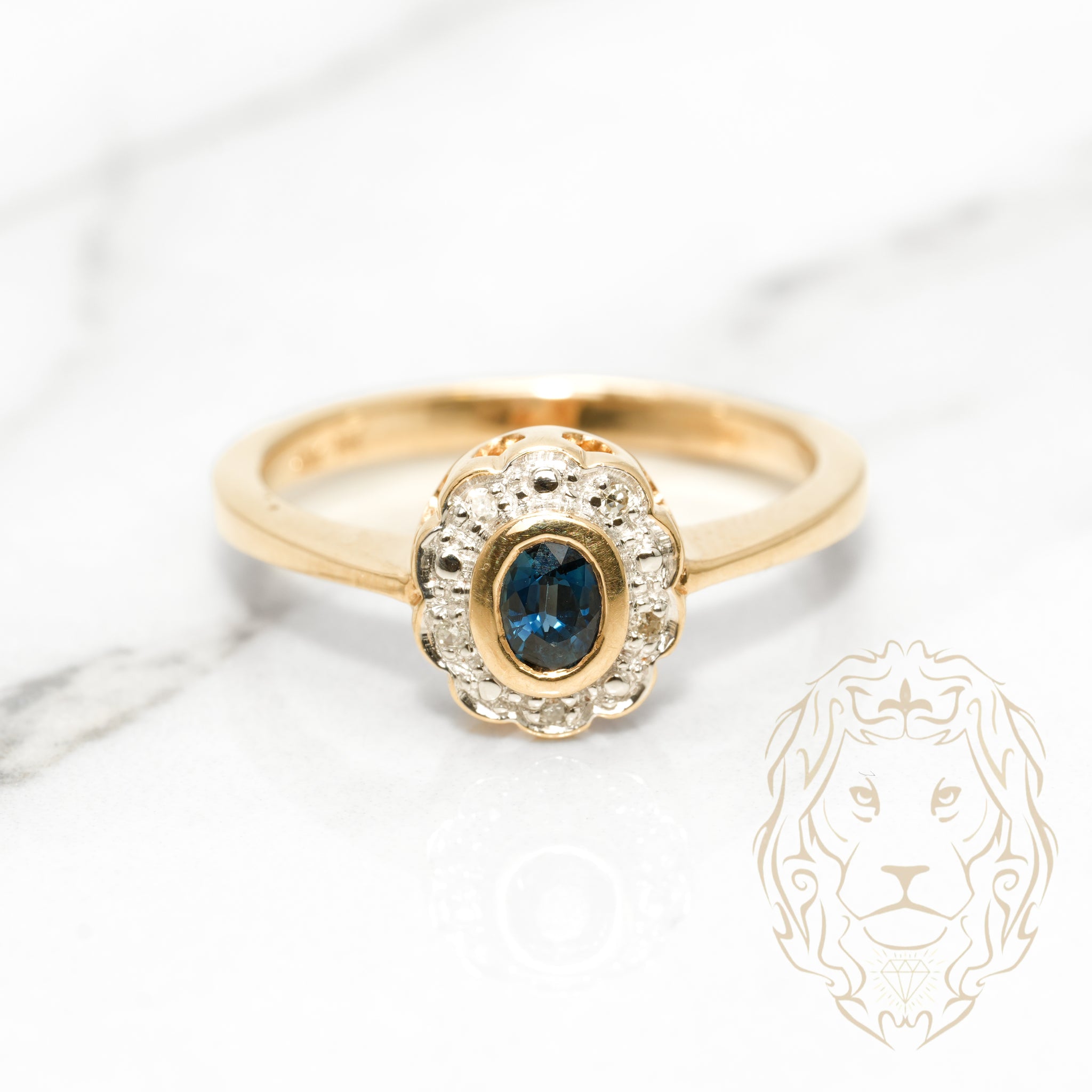 Ring - 10K Gold two-tone yellow & white halo cut oval sapphire 0.20CT close set & paved natural diamonds 0.08CT - RIGD134