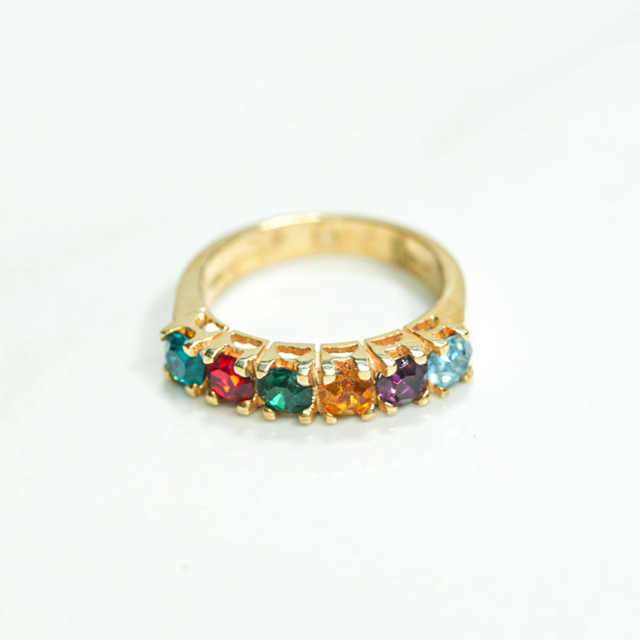 Bague - Or 10K six pierres coupe brillant jaune cz multicolores - RIG117