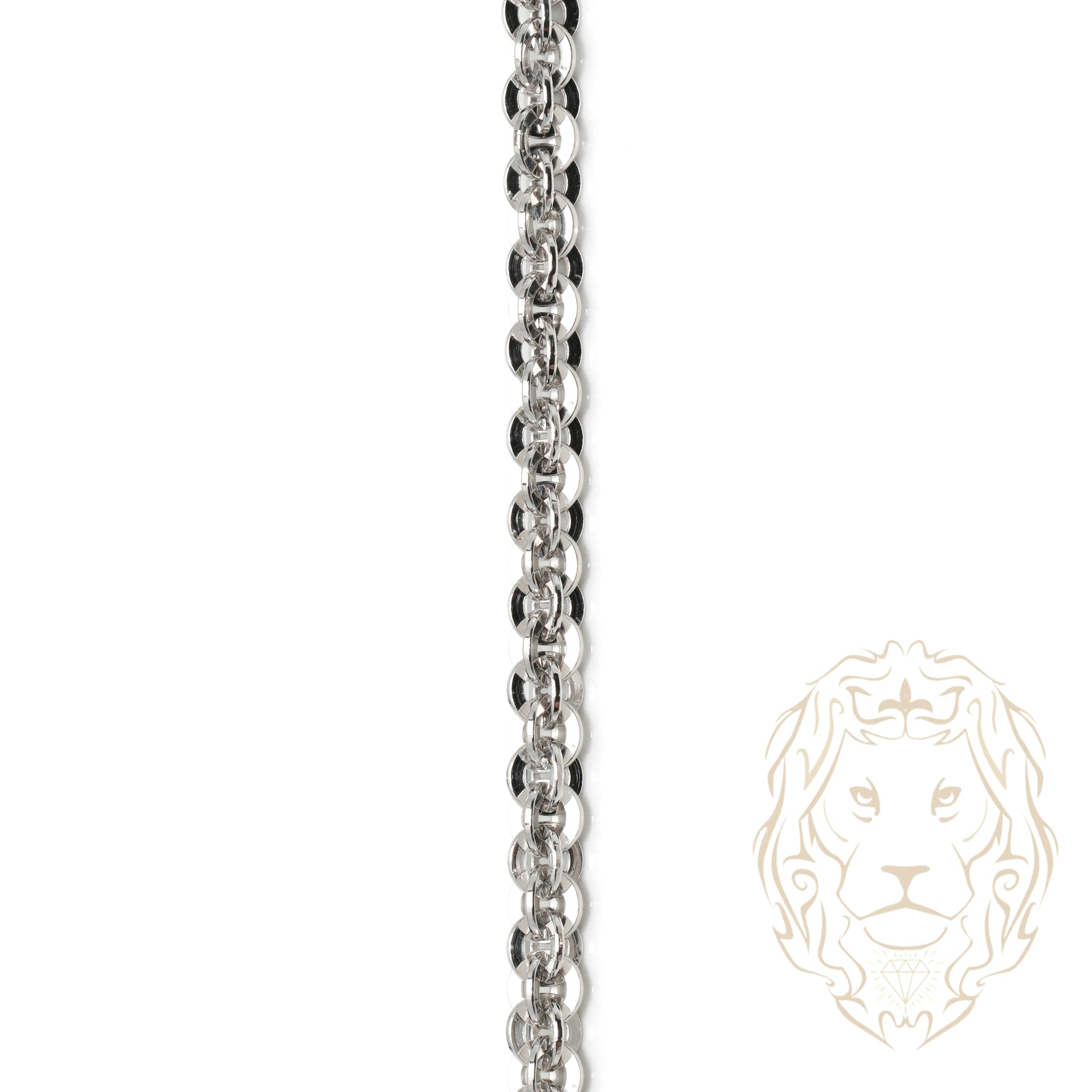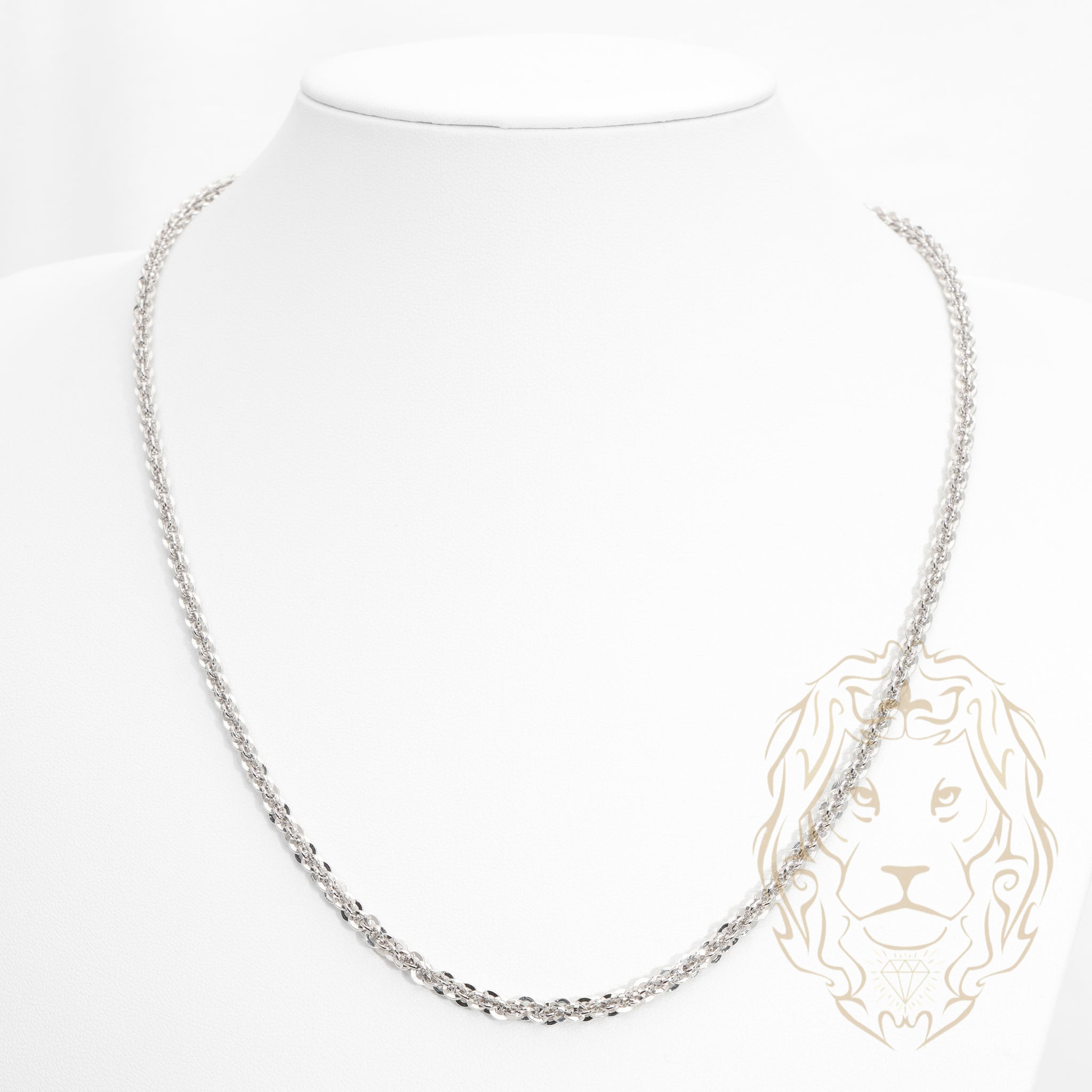 Cette chaîne crisscross de 3.8mm en argent rhodié propose un motif structuré et moderne qui capte élégamment la lumière.
