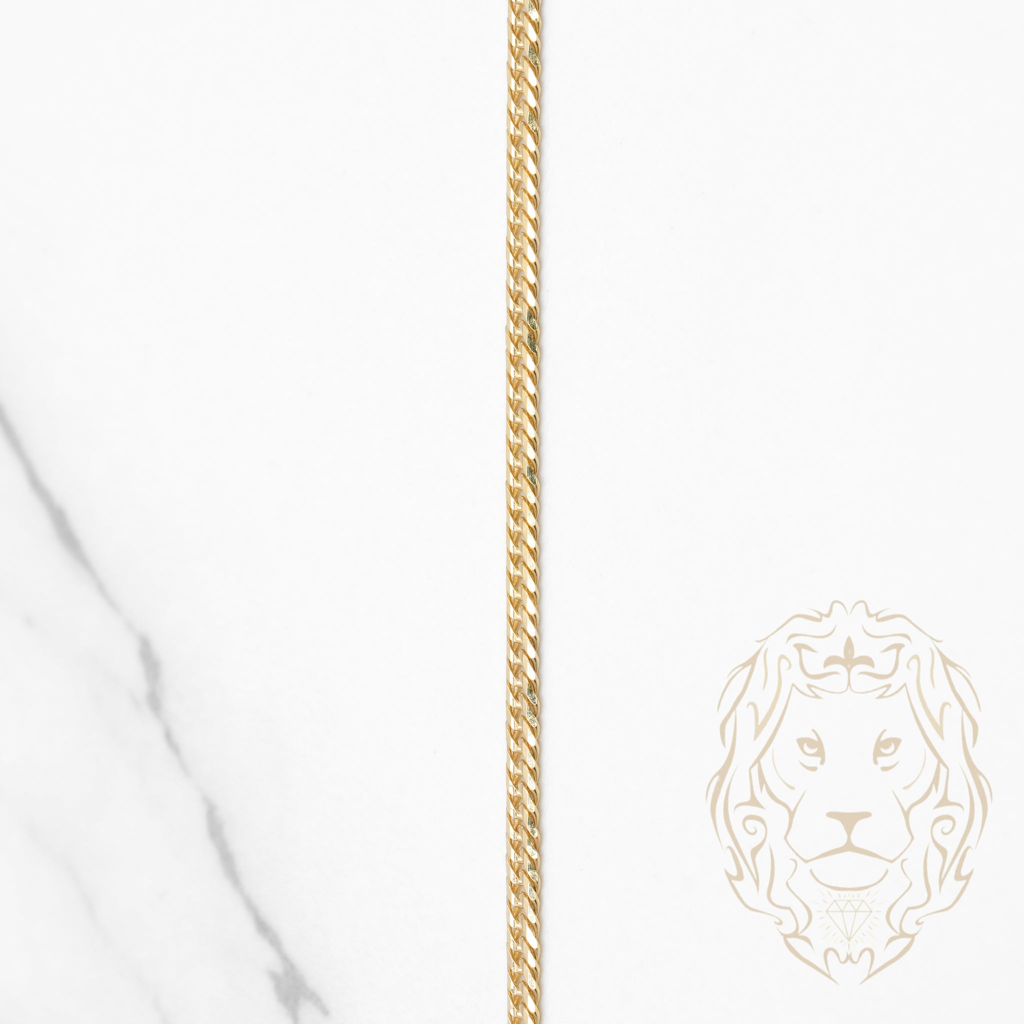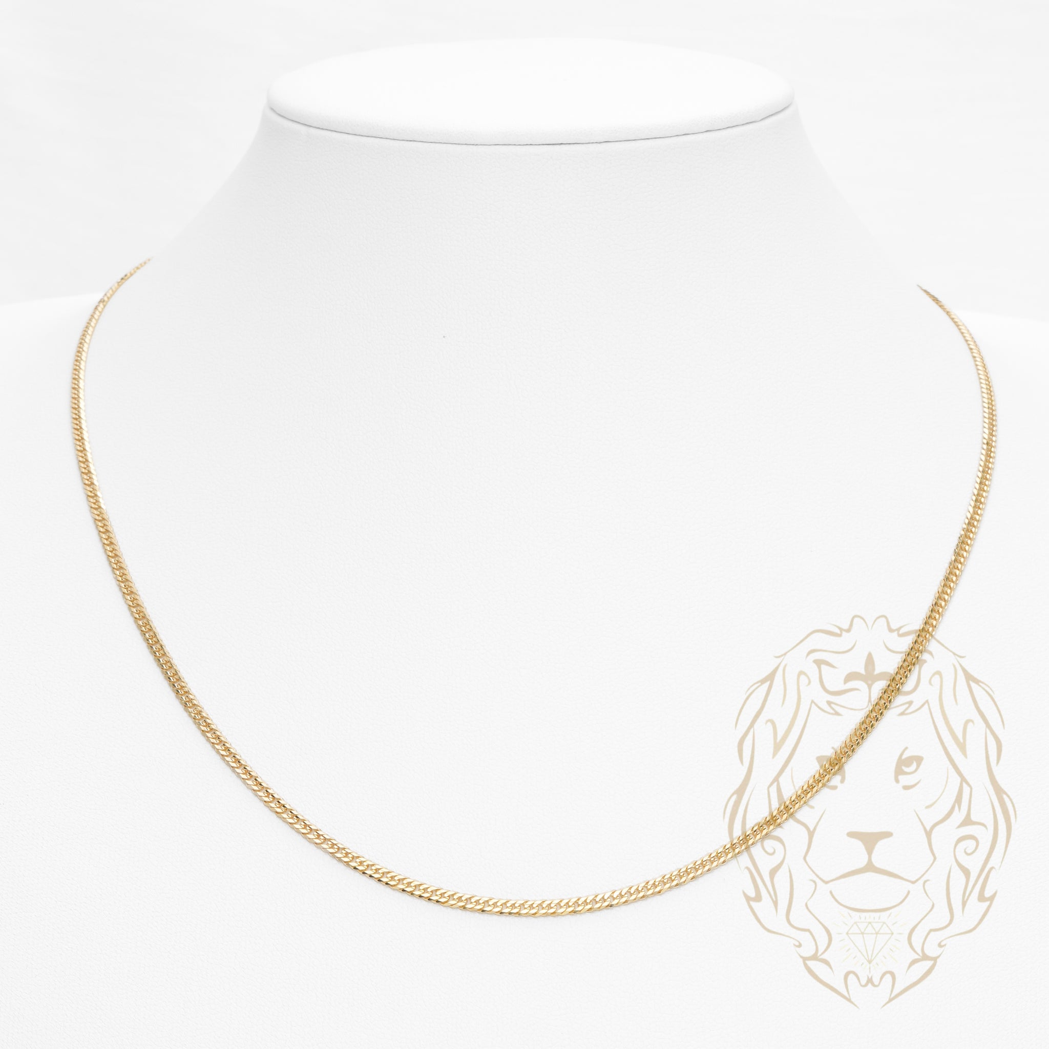 Cette chaîne double curb 2.5mm en or jaune 10K présente un maillage serré à double rang, pour plus de texture et de brillance. Une option élégante pour un look raffiné, avec ou sans pendentif.