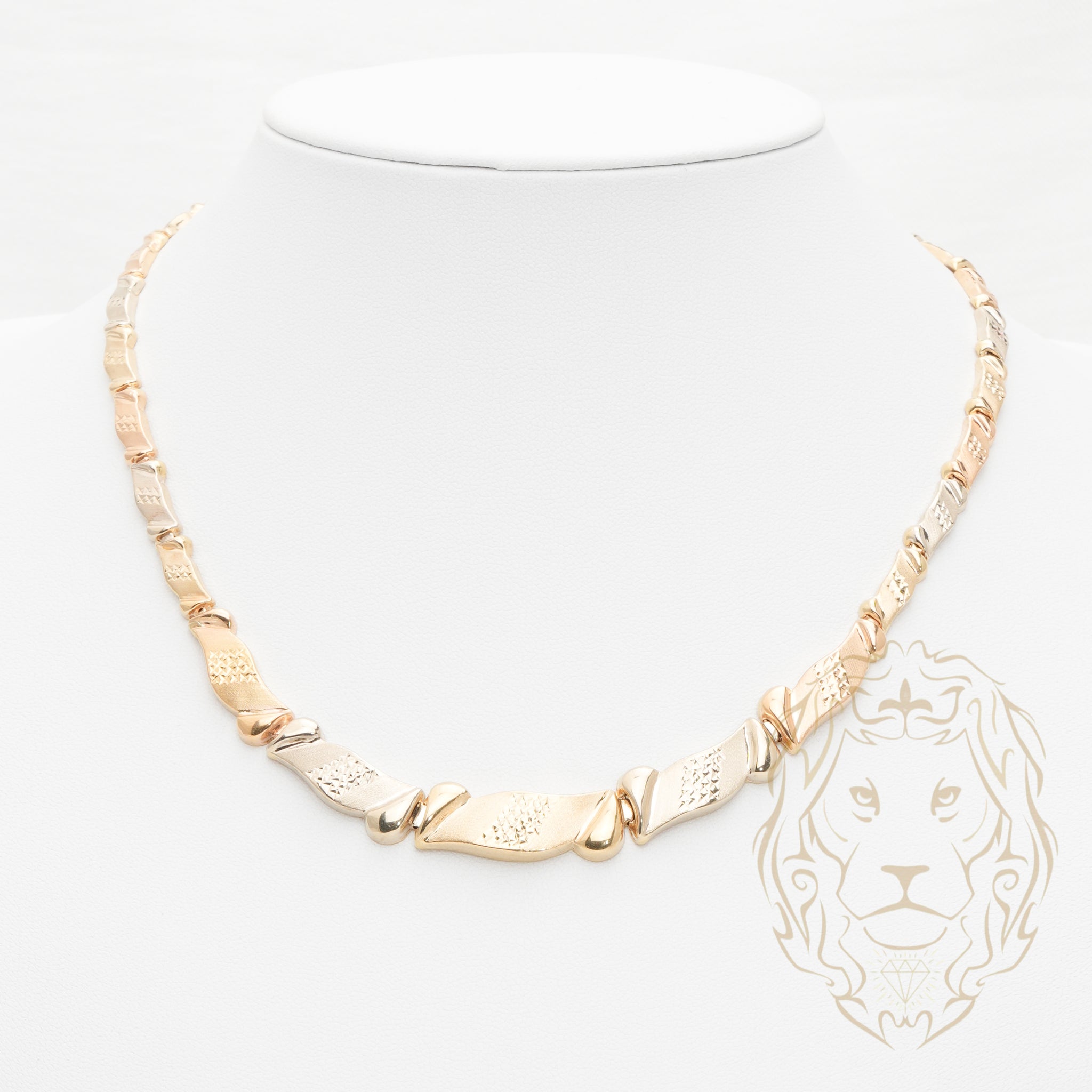 Ce collier en or 18K tricolore associe harmonieusement l’or jaune, blanc et rose pour un rendu élégant et polyvalent. Un bijou distinctif qui s’adapte à tous les styles.