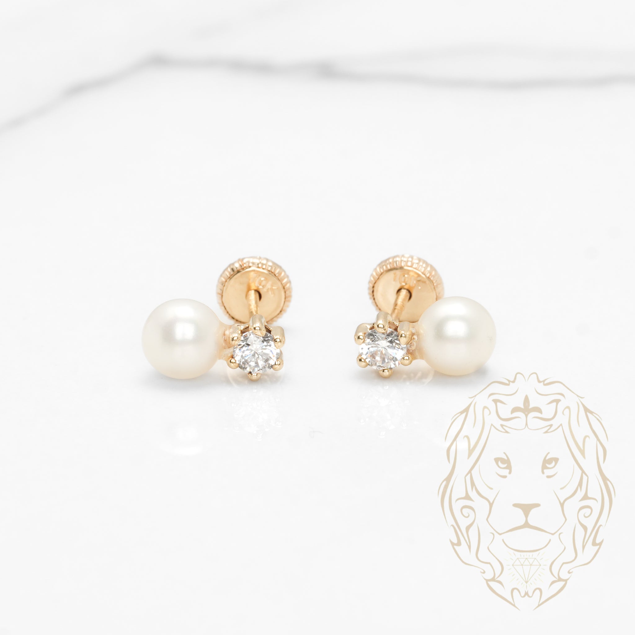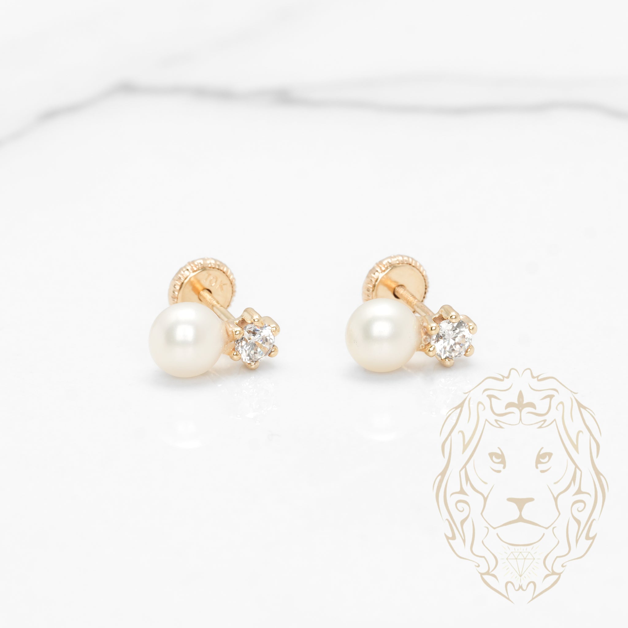 Studs à visser - Or 10K jaune pierre cz & perle - BOG1136